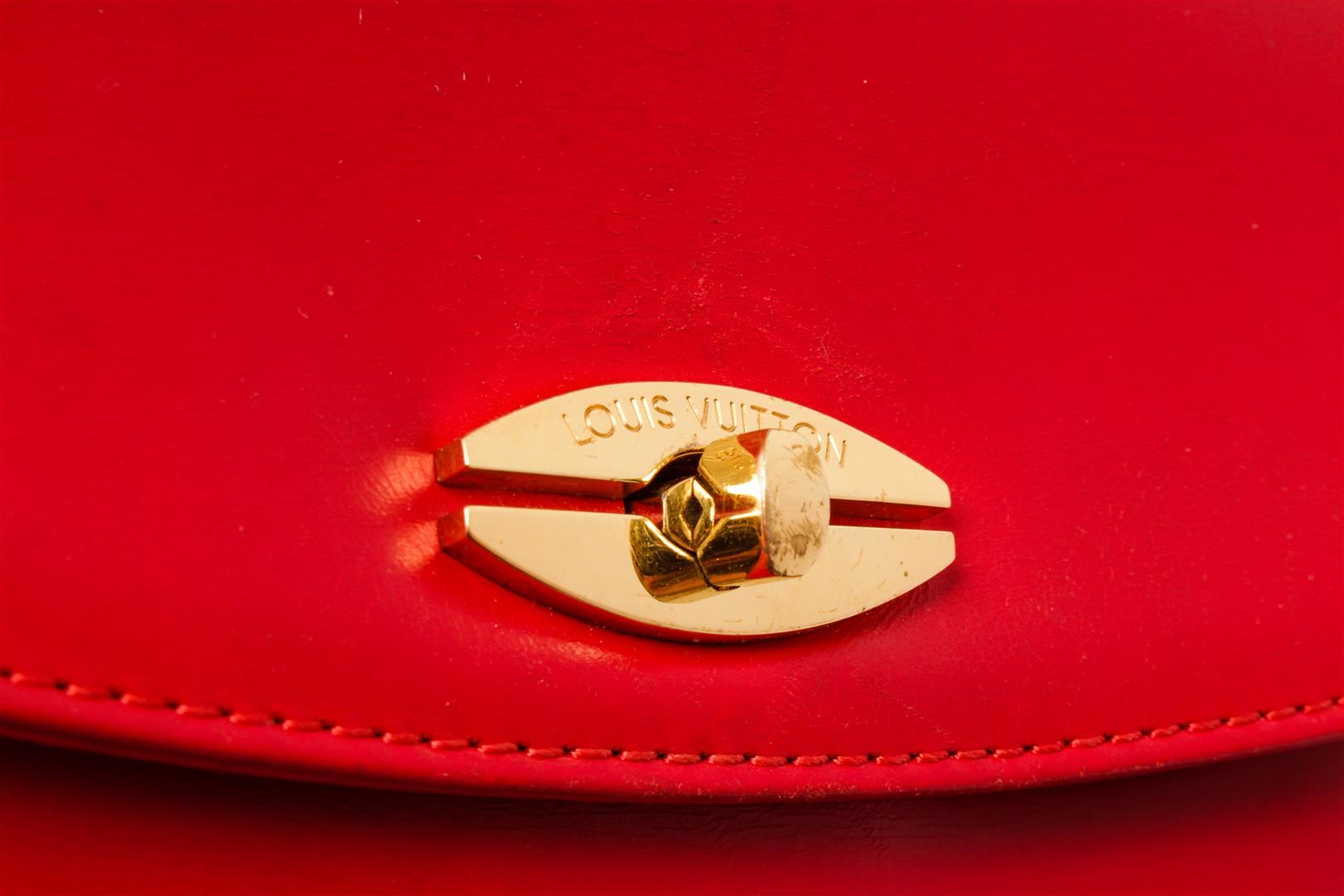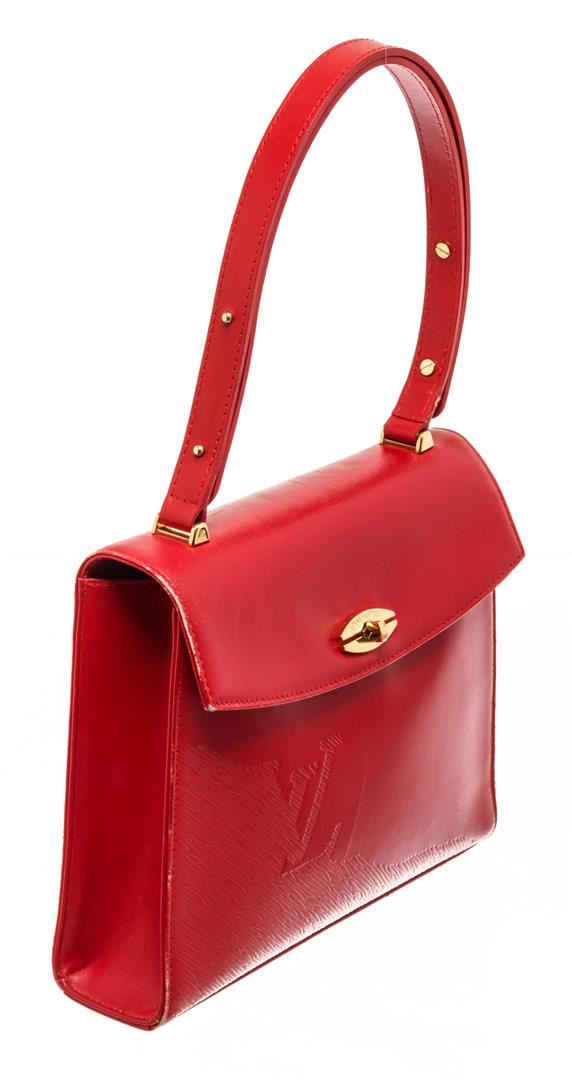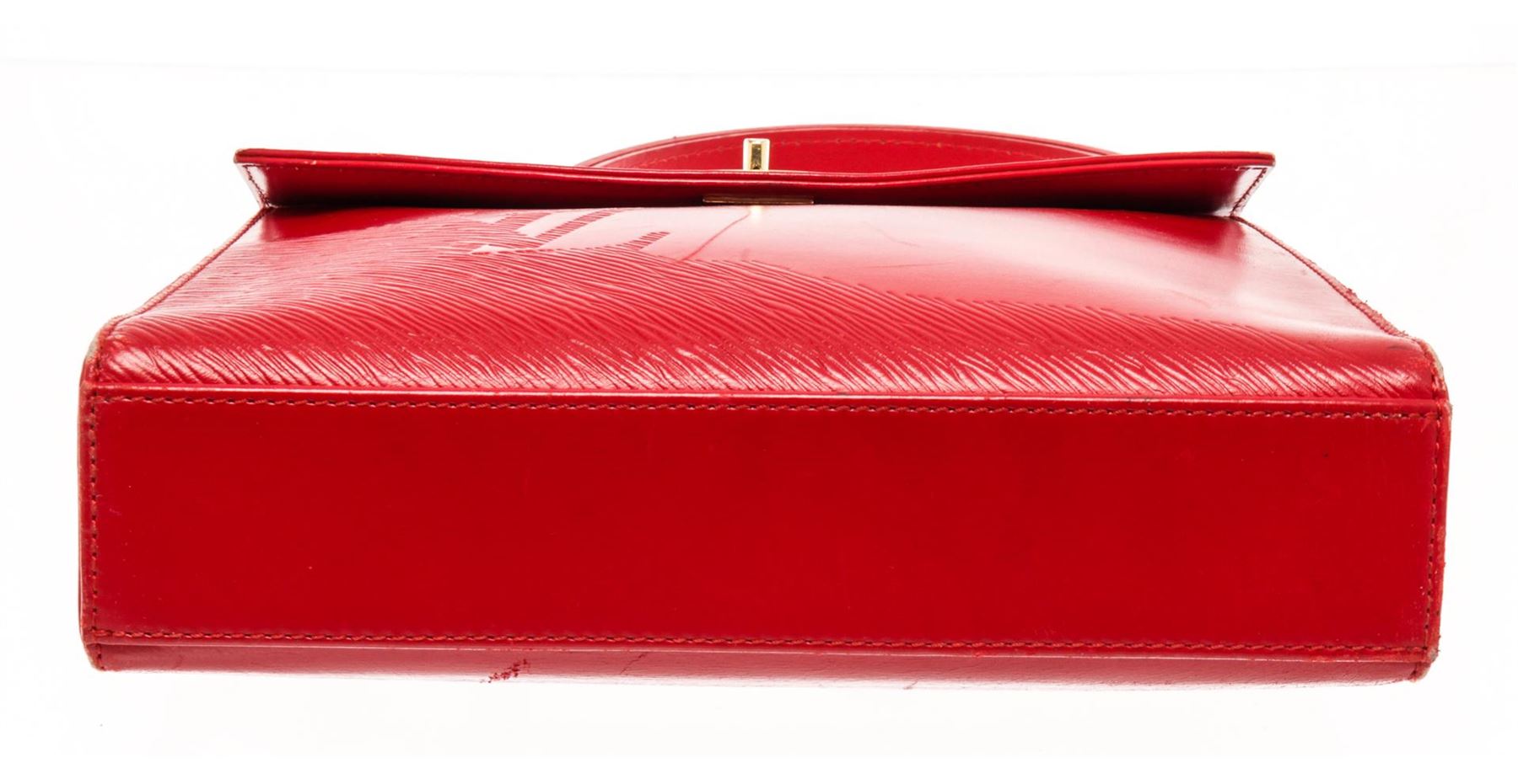 One Louis Vuitton Red Epi Leather Opera Sparta Shoulder Bag. Item is sold AS-IS. All available information is listed in the description and shown in the photo. Louis Vuitton Red Epi Leather Opera Sparta Shoulder Bag with top handle, gold tone hardware, red epi leather with logo on front, leather lining, interior zipper pocket, turn lock closure.