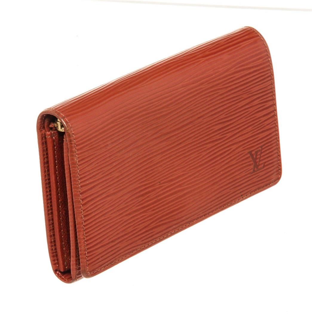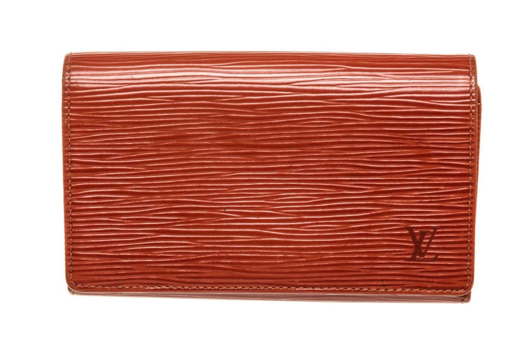 Louis Vuitton Red Epi Leather Porte Monnaie Wallet with Epi Leather, gold-tone hardware, trim tan vachetta leather, interior three compartments pocket and snap closure.