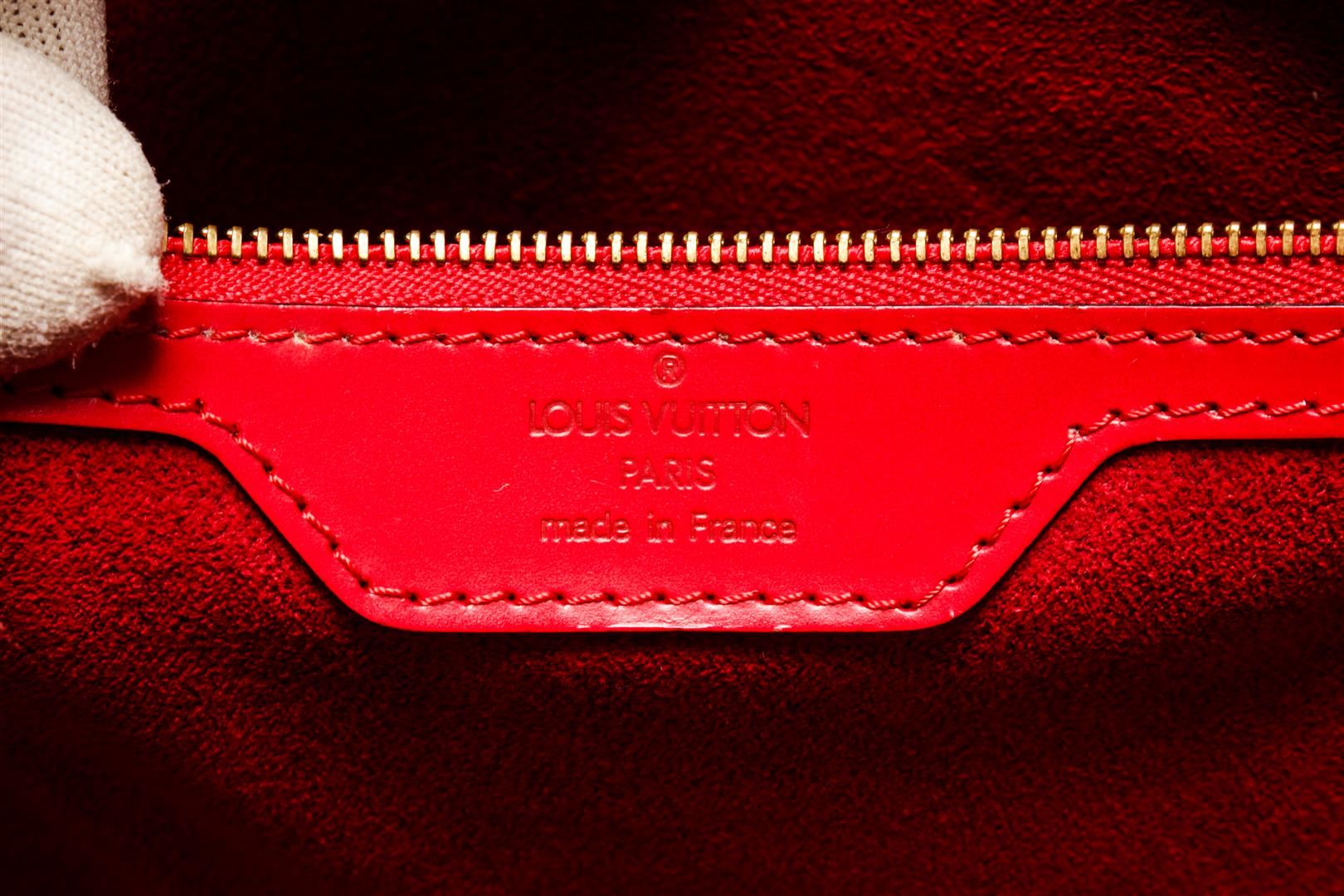 One Louis Vuitton Red Epi Leather Saint Jacques Shoulder Bag. Item is sold AS-IS. All available information is listed in the description and shown in the photo. louis vuitton red epi leather saint jacques shoulder bag with gold-tone hardware, debossed logo to the front, top zip fastening, two long top handles, internal jetted pocket, internal logo patch, leather lining, Depth 6.7 in, Height 11.8 in, Strap 9.4 in, Width c in / Depth 17 cm, Height 30 cm, Strap 24 cm, Width 26 cm