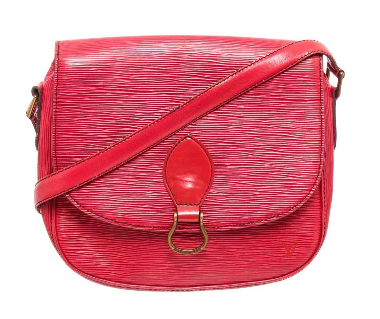 Louis Vuitton Red Epi Leather St. Cloud MM Crossbody Bag with Silver-tone hardware, interior Zip pockets, Leather lining, Leather shoulder strap, and Snap closure. Measurements: Length: 11 in / 28 cm Width: 6 in / 15 cm 11 in / 28 cmCONDITION: Pre-Owned Good overall, please see photographs for detail.