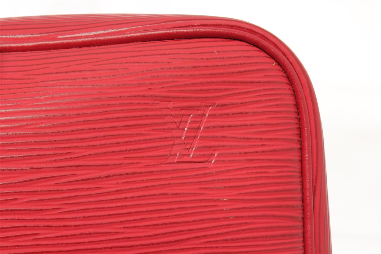 One Louis Vuitton Red Epi Leather Vivienne Long Handbag. Item is sold AS-IS. All available information is listed in the description and shown in the photo. Louis Vuitton Red Epi Leather Vivienne Long Handbag with top handle, exterior slip pocket, red fabric lining, silver tone hardware, zipper closure. 12.6" L(32cm) x 6.3" W(16cm) x 2.8" H(6.5cm)