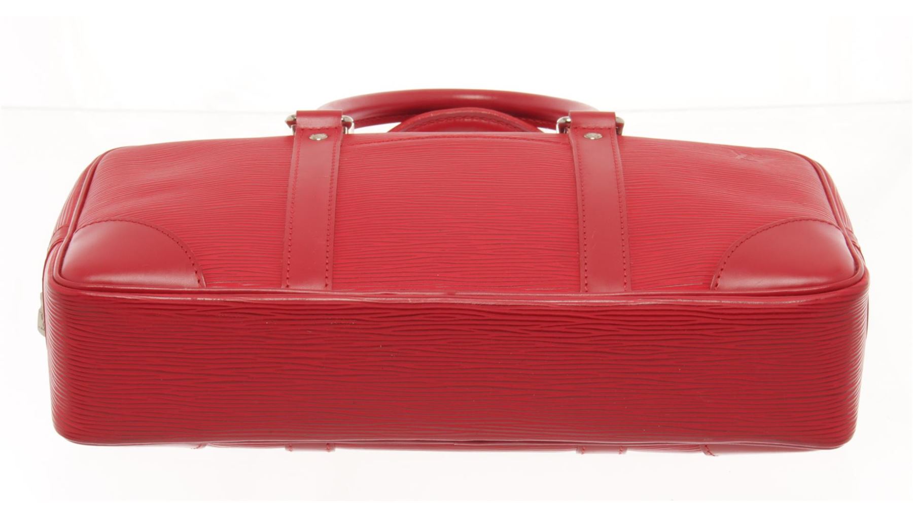 One Louis Vuitton Red Epi Leather Vivienne Long Handbag. Item is sold AS-IS. All available information is listed in the description and shown in the photo. Louis Vuitton Red Epi Leather Vivienne Long Handbag with top handle, exterior slip pocket, red fabric lining, silver tone hardware, zipper closure. 12.6" L(32cm) x 6.3" W(16cm) x 2.8" H(6.5cm)