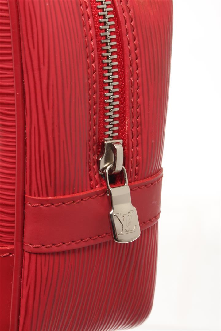 One Louis Vuitton Red Epi Leather Vivienne Long Handbag. Item is sold AS-IS. All available information is listed in the description and shown in the photo. Louis Vuitton Red Epi Leather Vivienne Long Handbag with top handle, exterior slip pocket, red fabric lining, silver tone hardware, zipper closure. 12.6" L(32cm) x 6.3" W(16cm) x 2.8" H(6.5cm)