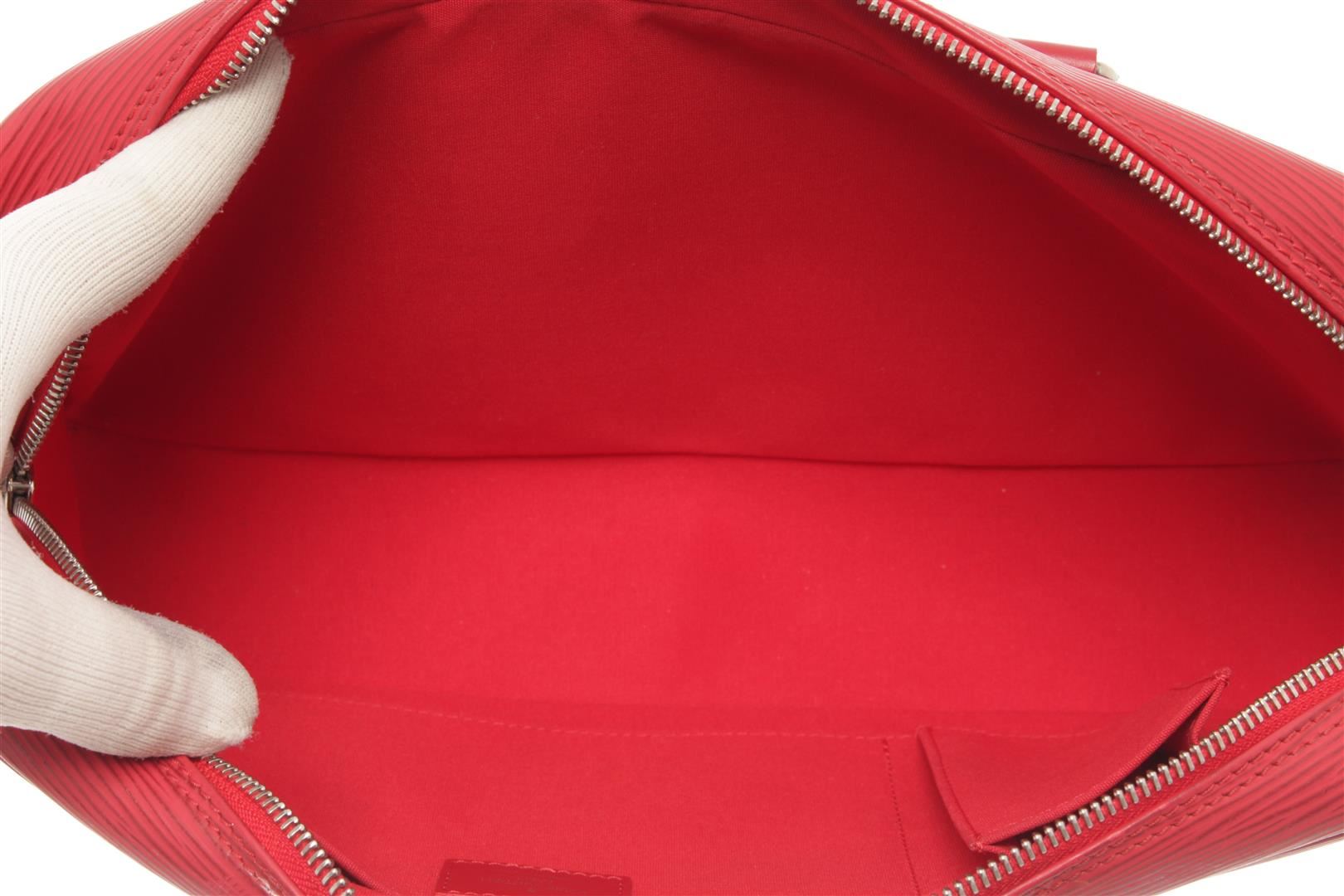 One Louis Vuitton Red Epi Leather Vivienne Long Handbag. Item is sold AS-IS. All available information is listed in the description and shown in the photo. Louis Vuitton Red Epi Leather Vivienne Long Handbag with top handle, exterior slip pocket, red fabric lining, silver tone hardware, zipper closure. 12.6" L(32cm) x 6.3" W(16cm) x 2.8" H(6.5cm)