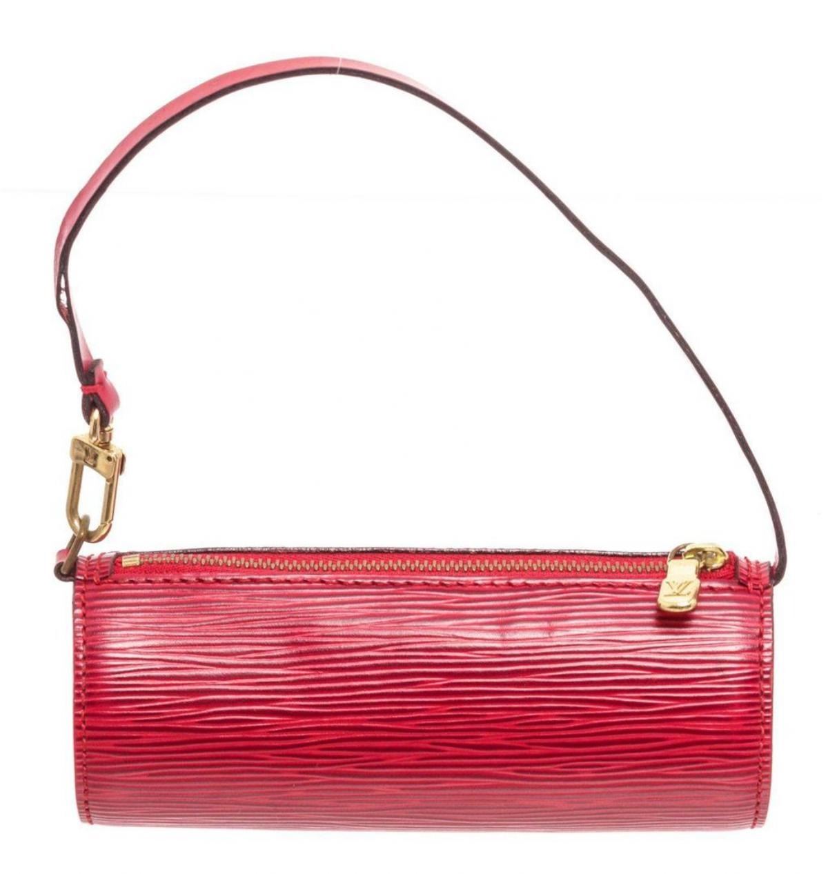 Louis Vuitton Red Epi Mini Papillon Shoulder Bag. Louis Vuitton Red Epi Mini Papillon Shoulder Bag with gold-tone hardware, trim tan vachetta leather and zipper closure. Measurements: Length: 6 in / 15 cm Width: 2.5 in / 6 cm 3 in / 8 cmCONDITION: Pr