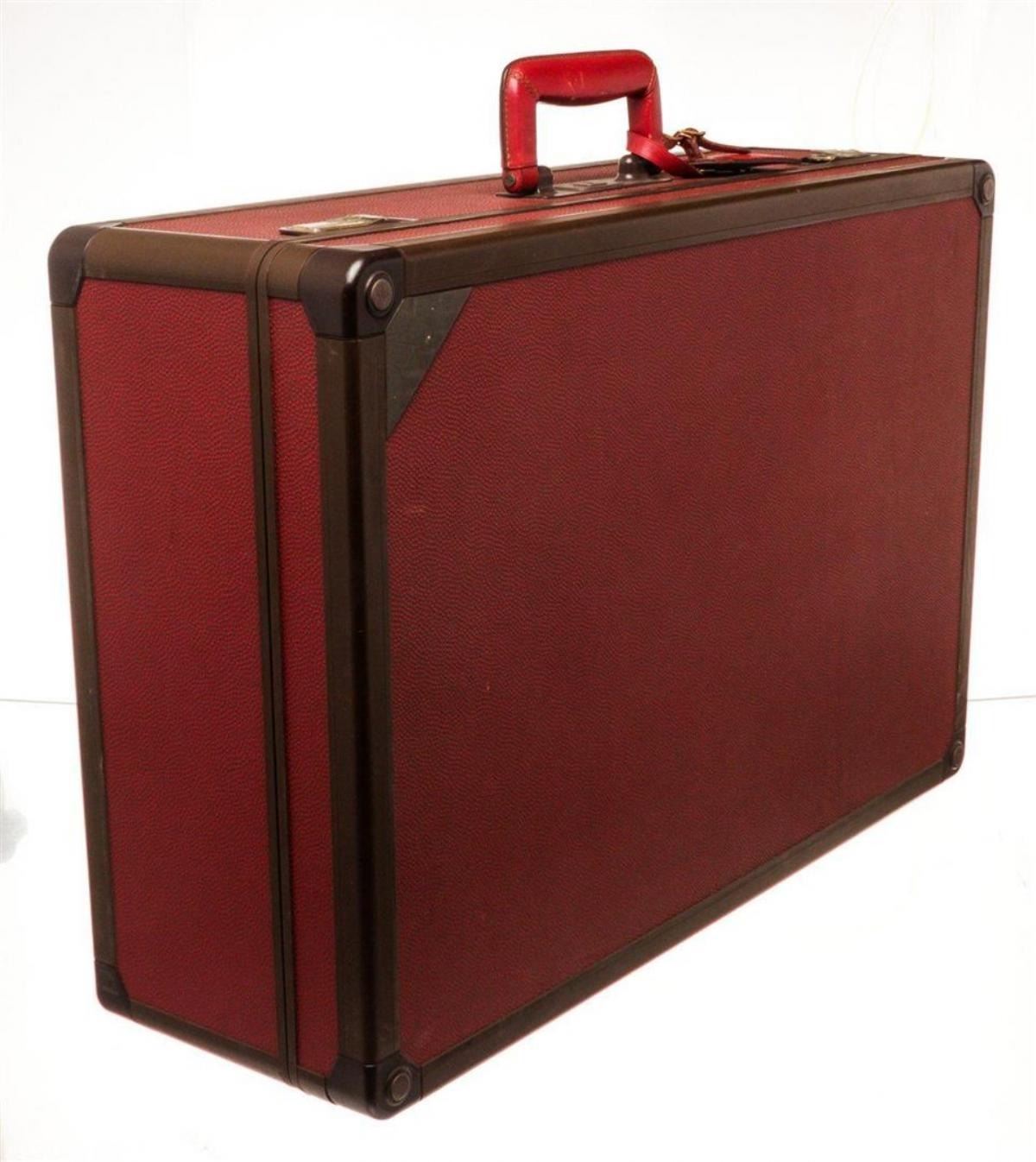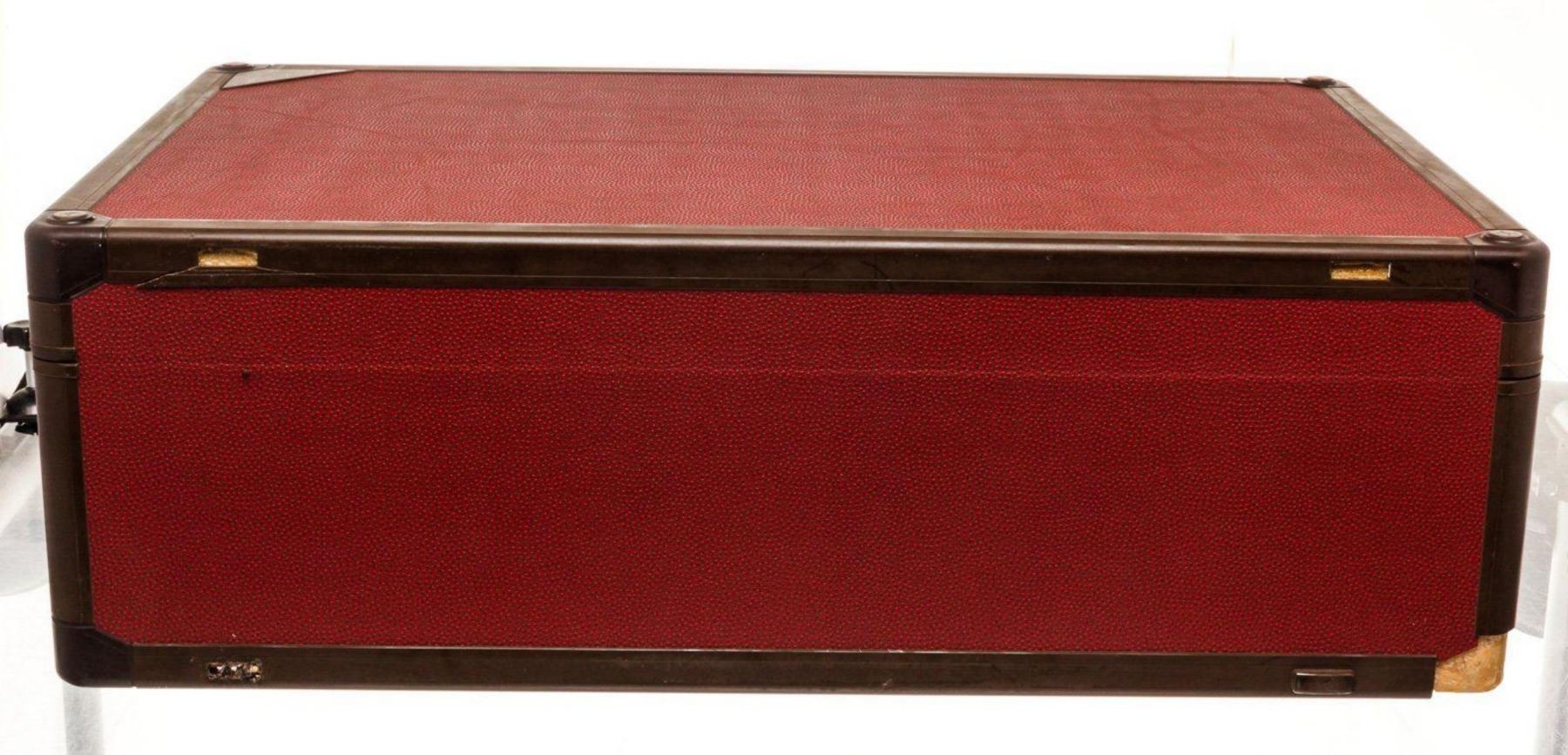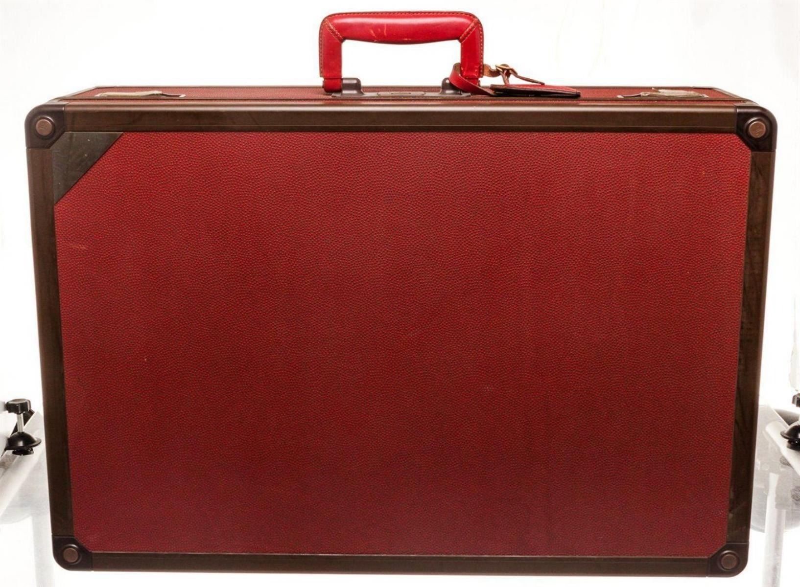 Louis Vuitton Red Leather 1887 Cup Trunk with leather trim and hardware, black and orange resin chains, black fabric interior lining, one slip pocket at interior wall and overall double zipper closure.