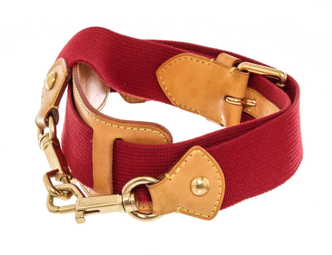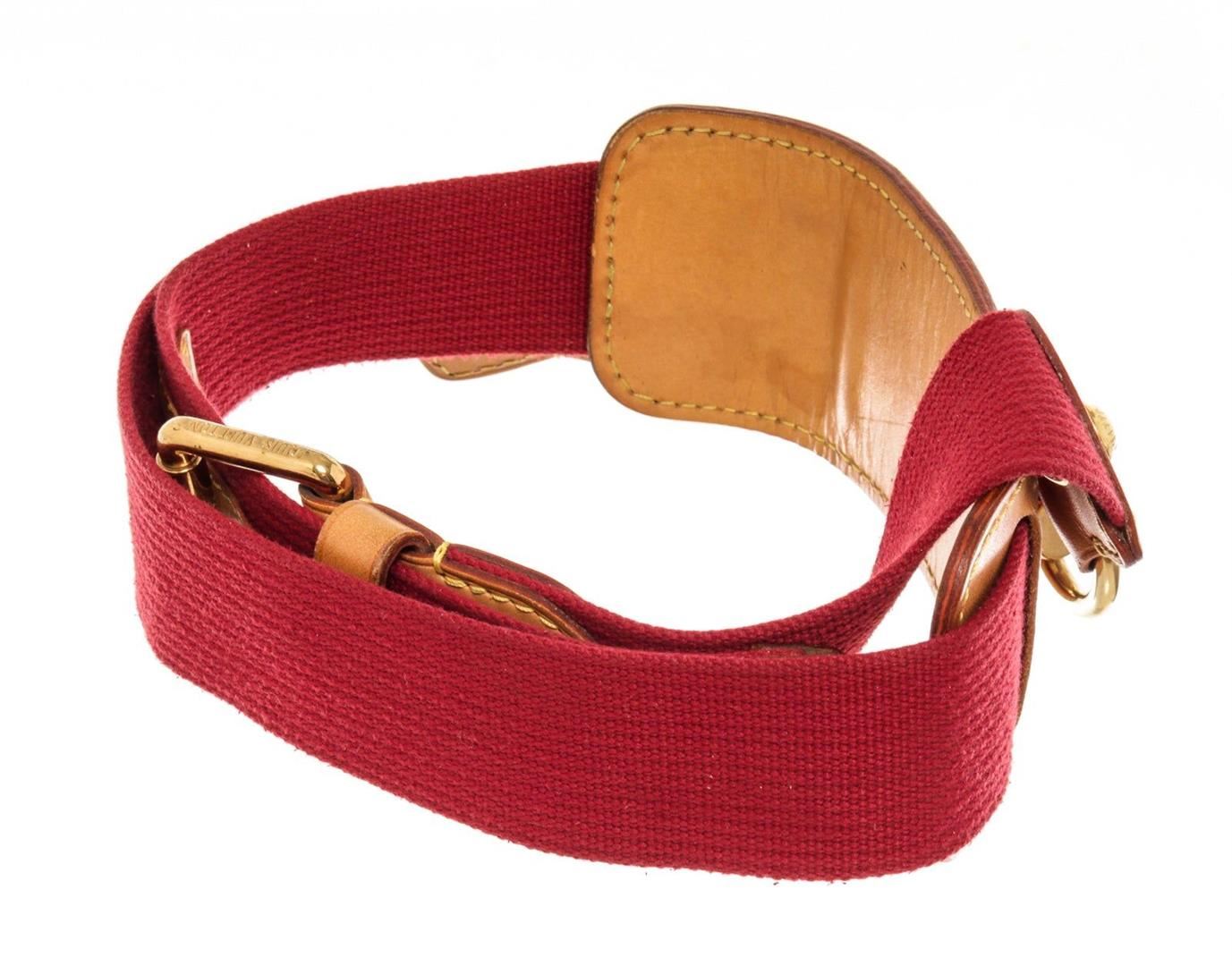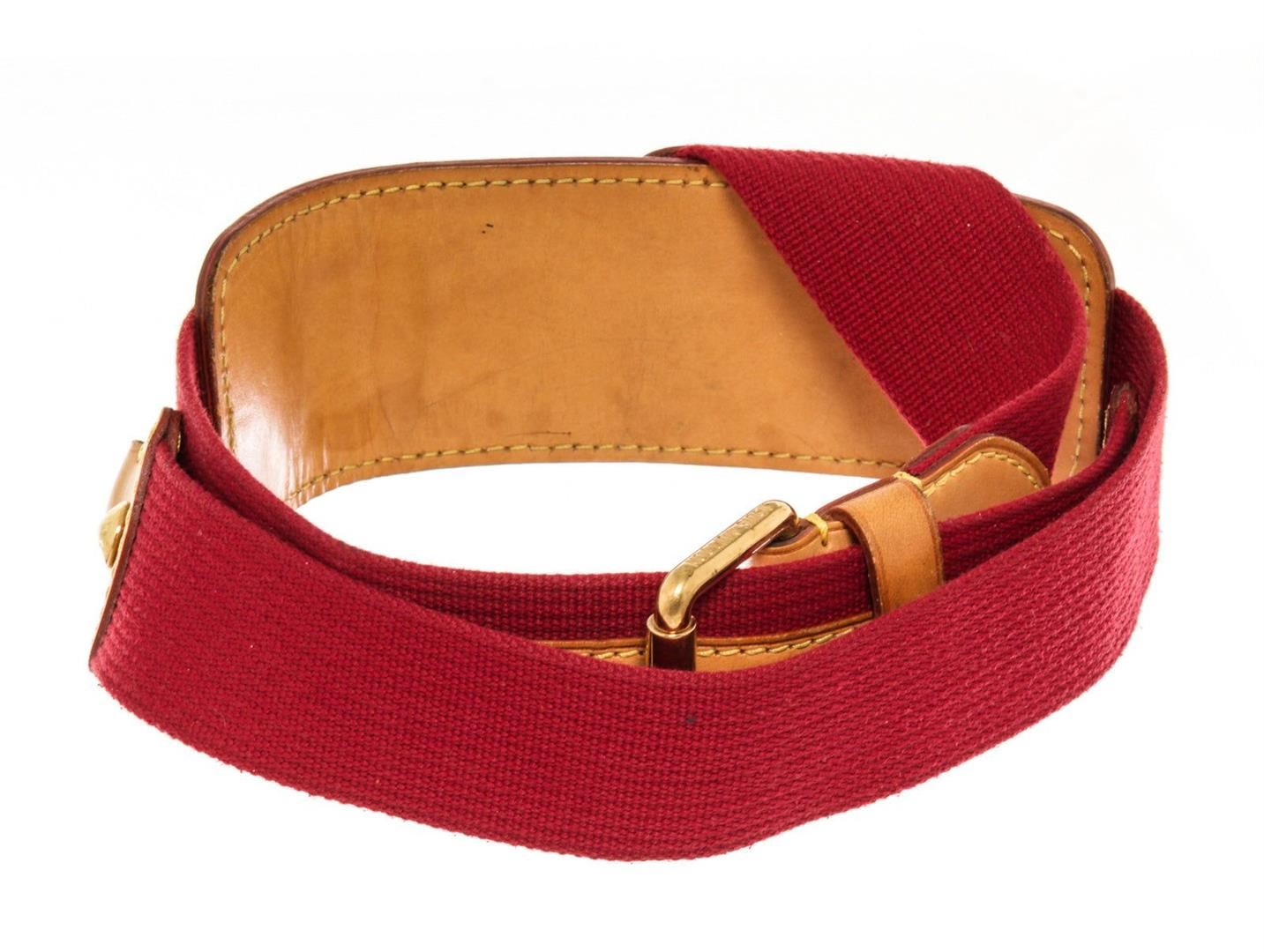 Louis Vuitton Red Leather Adjustable Strap with leather, tan vachetta leather, turn lock closure.
