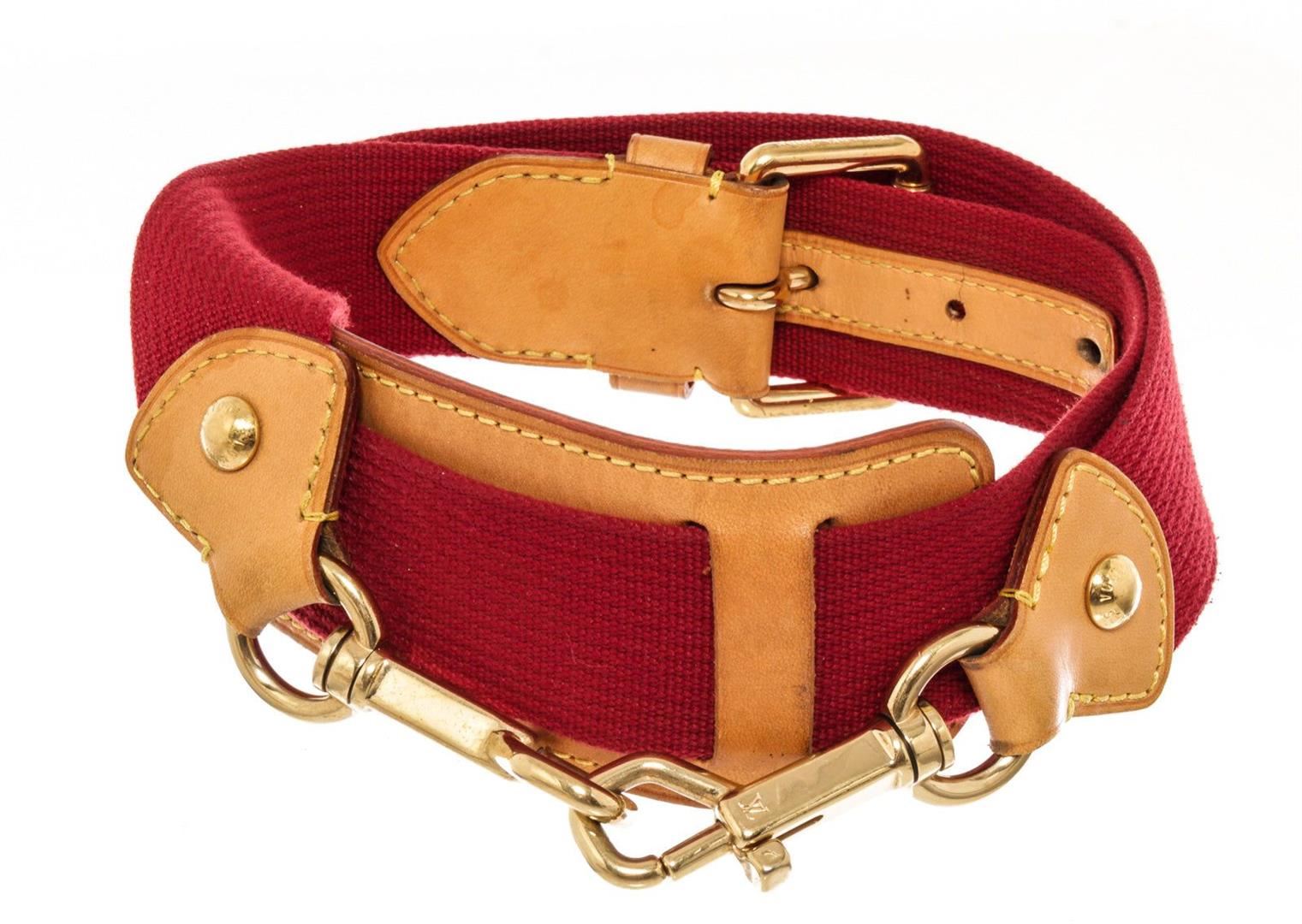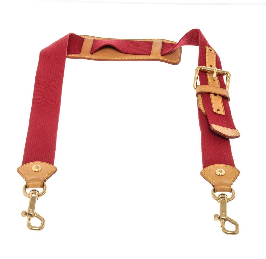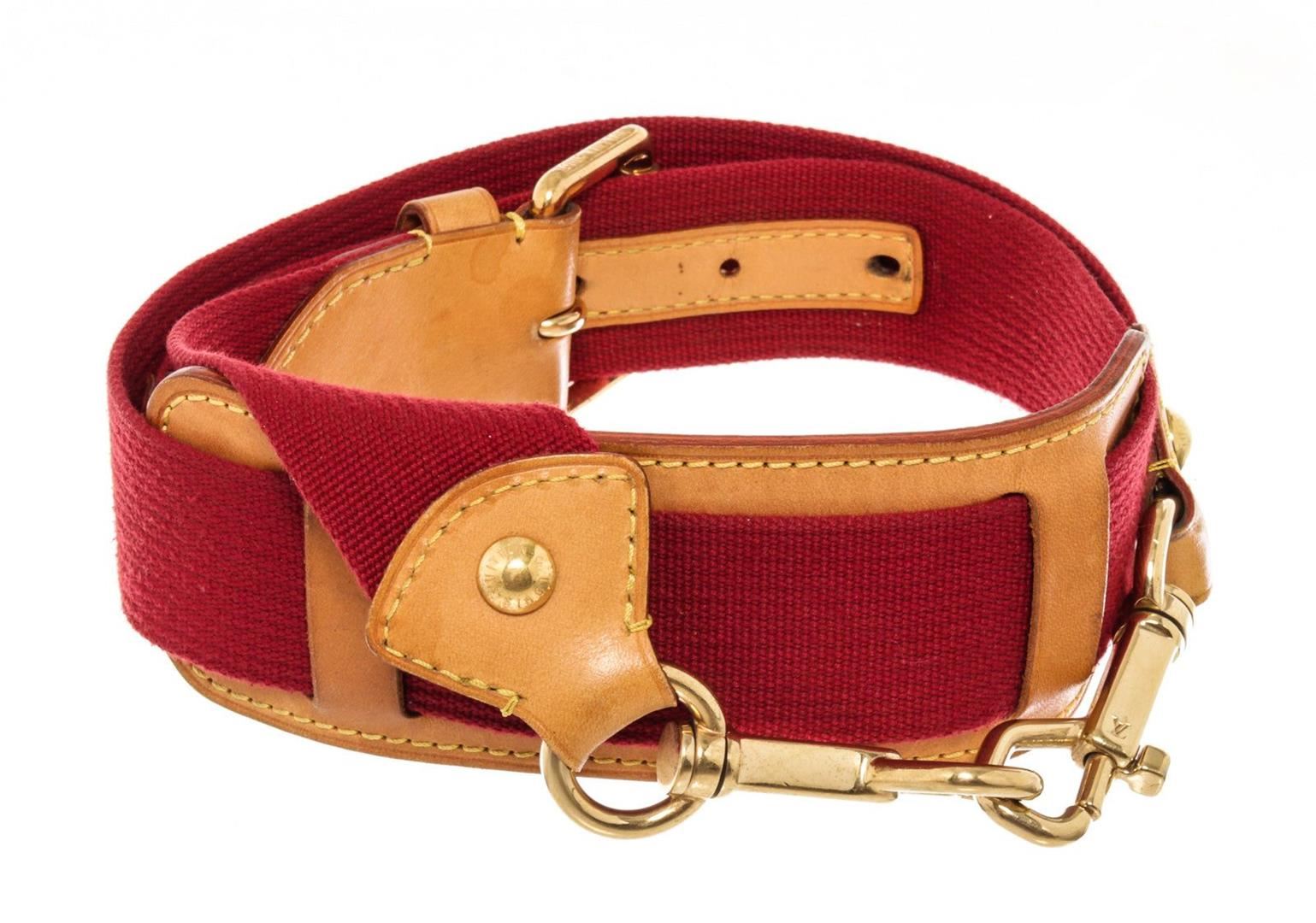 Louis Vuitton Red Leather Adjustable Strap with leather, tan vachetta leather, turn lock closure.