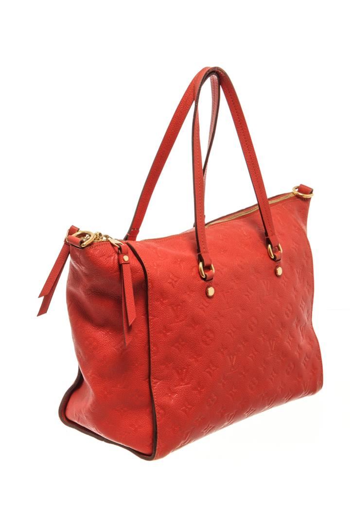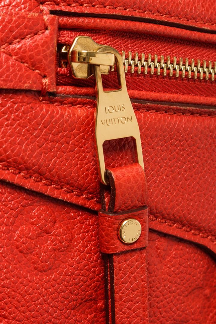Louis Vuitton Red Leather Lumineuse PM Shoulder Bag. All available information is listed in the description and shown in the photos. louis vuitton red leather lumineuse pm shoulder bag with lumineuse pm features a monogram empreinte leather, an exterior front zip pocket flat leather handles, top zip closure, and interior zip pocket. Height: 11.02" Width: 13.38" Depth: 6.29", Handle Drop: 17" / 28 x 34 x 16 Cm