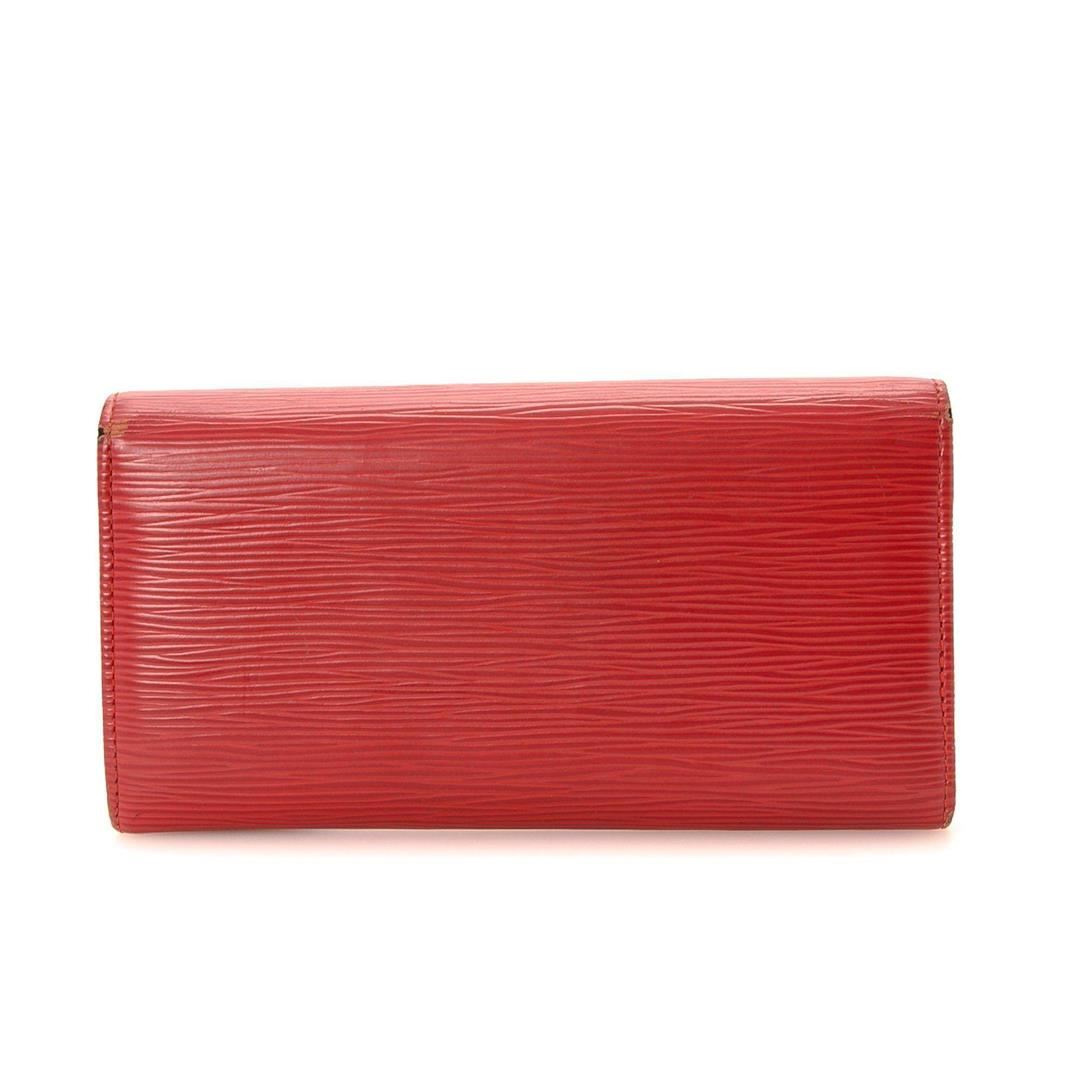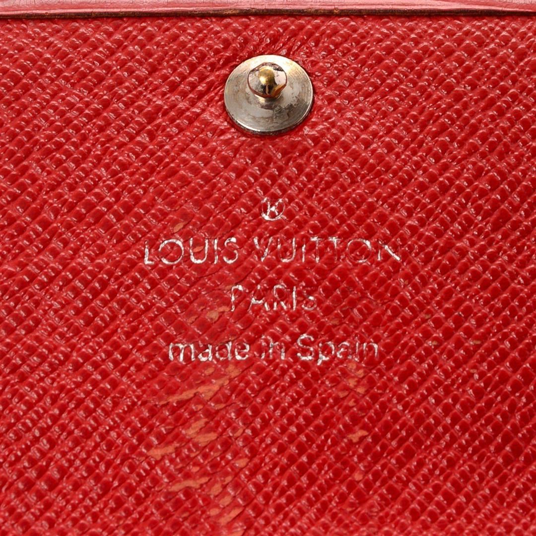 Louis Vuitton Red Monogram Carmine Sarah Wallet with gold-tone hardware, monogram leather, tan vachetta leather trim, flap closure. Measurements: Length: 17.2 in / 44 cm Width: 5 in / 13 cm 14.1 in / 36 cm Condition: Pre-Owned Good overall, please see photographs for detail.