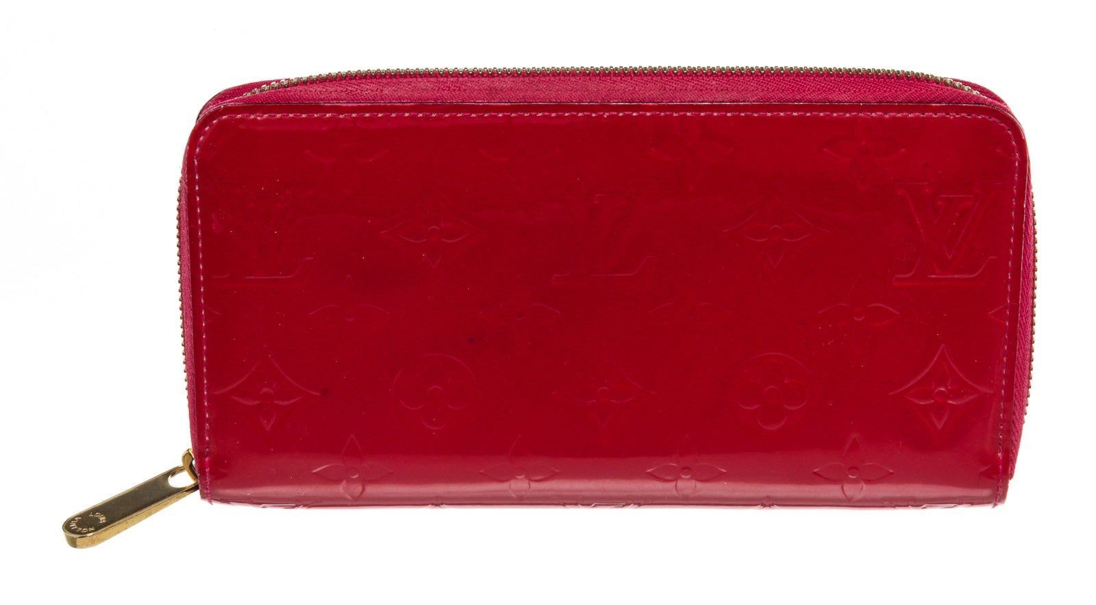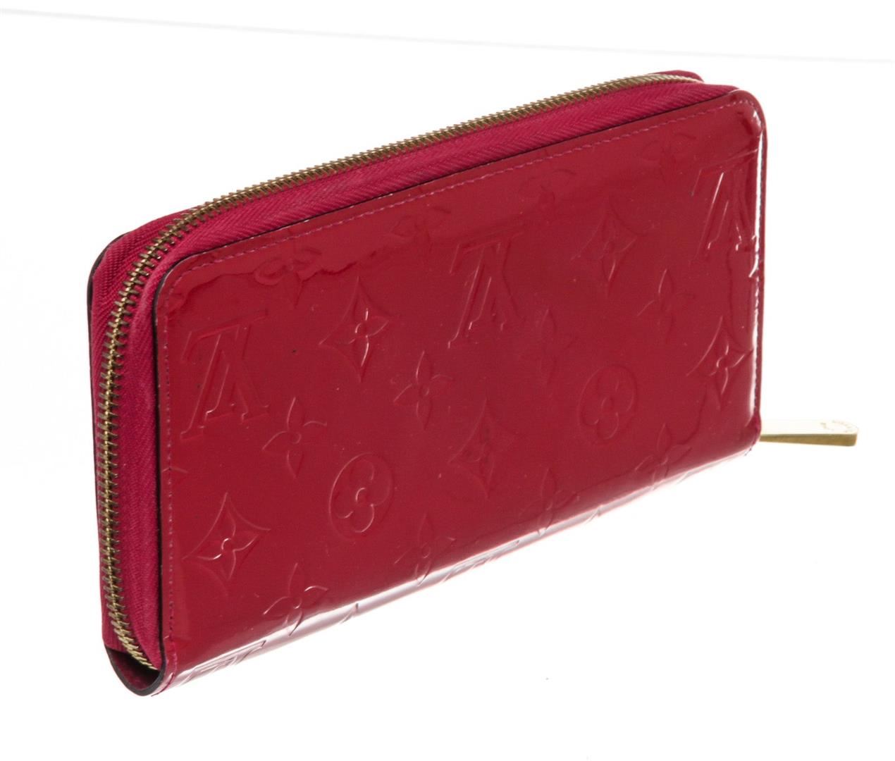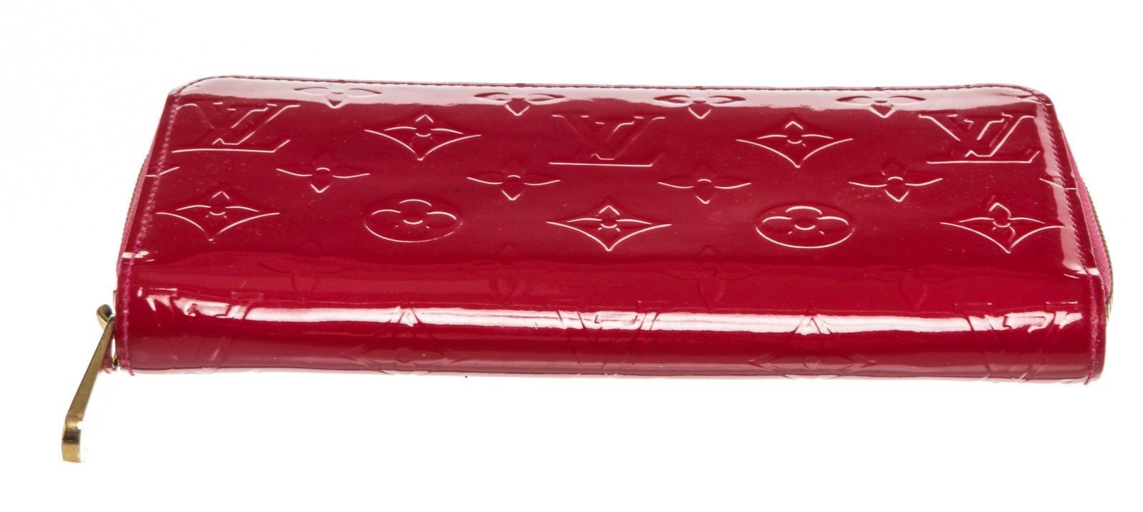 Louis Vuitton Red Monogram Vernis Leather Zippy Wallet with silver-tone hardware, black leather lining, three bill compartments, eight card slots, four interior compartments; one with zip closure and zip-around closure.