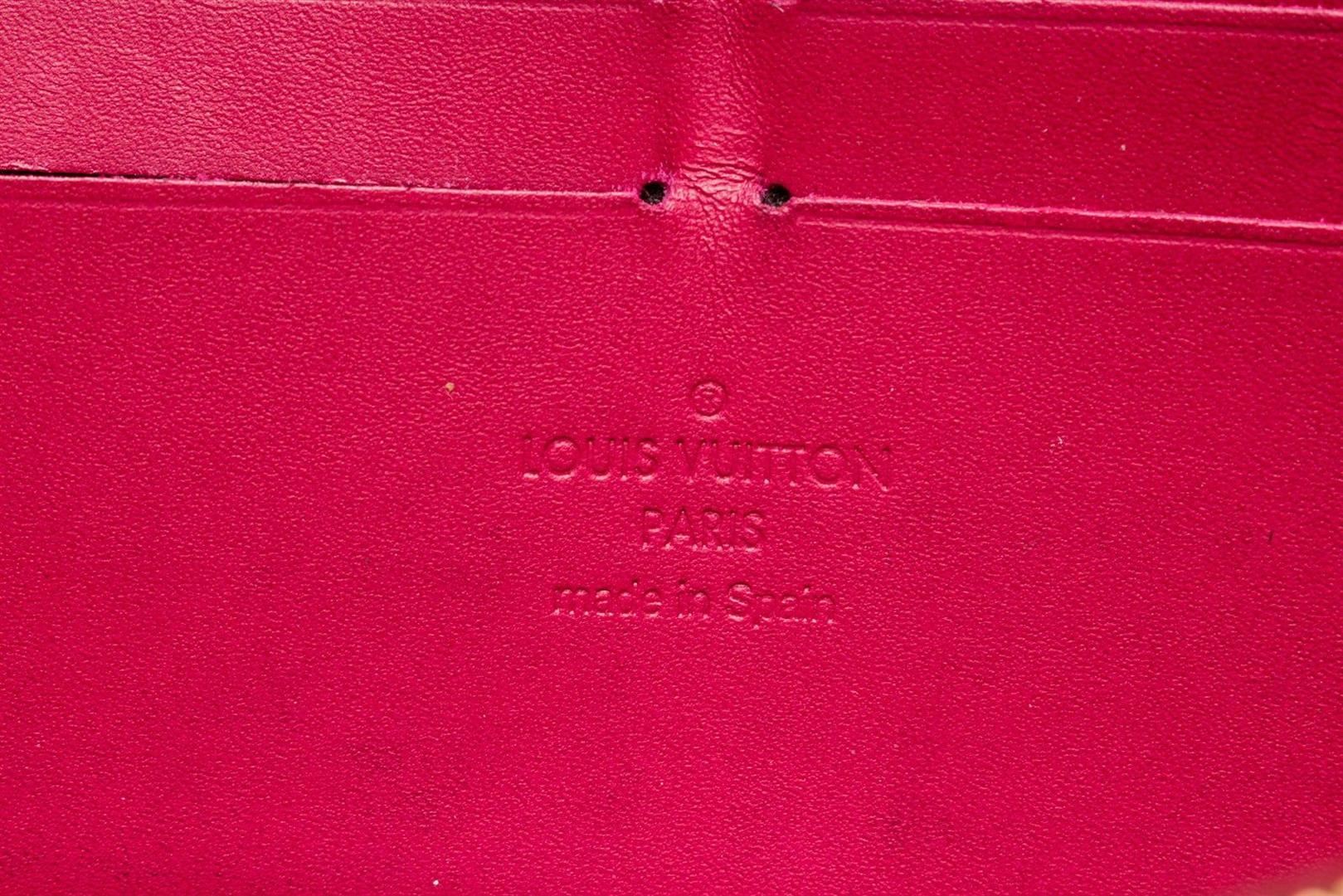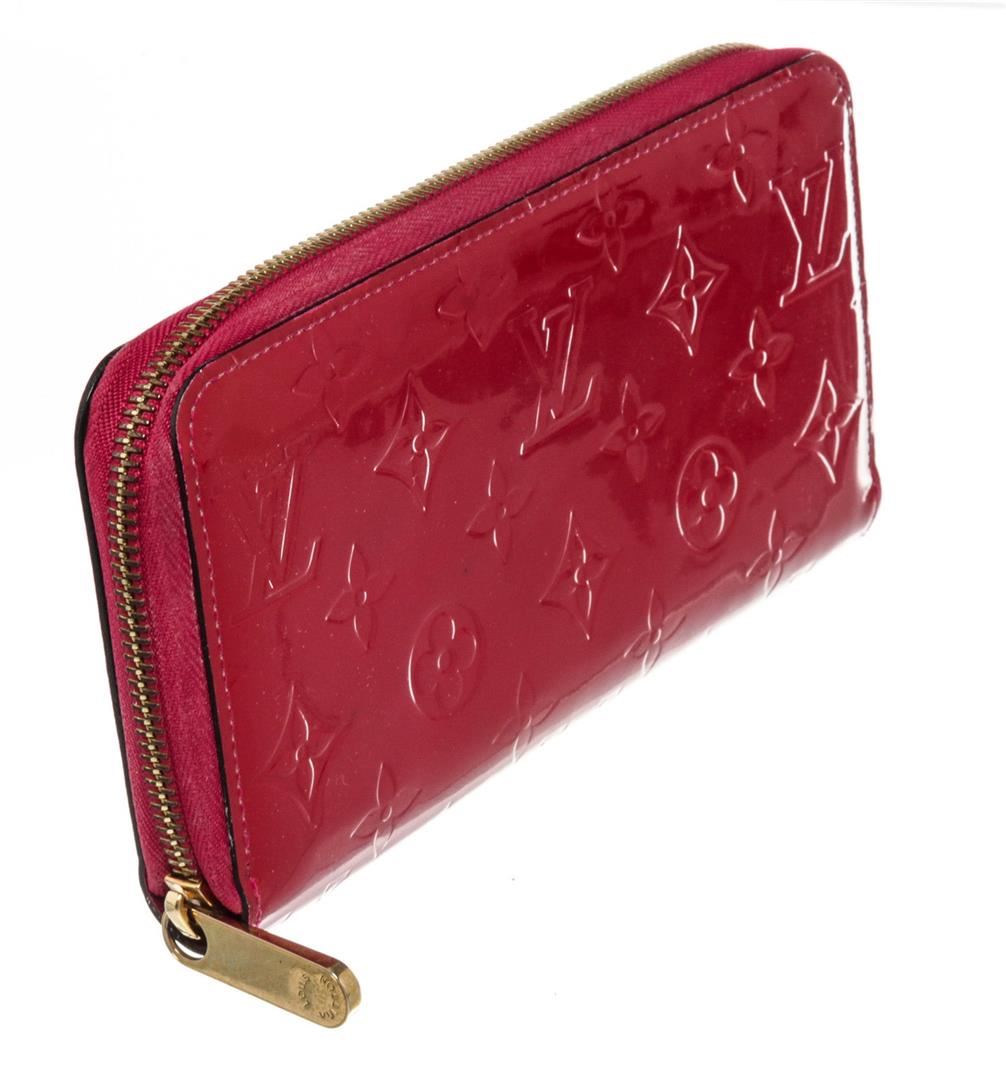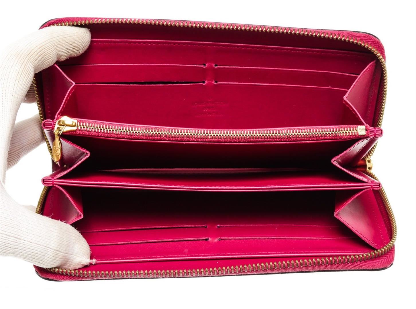 Louis Vuitton Red Monogram Vernis Leather Zippy Wallet with silver-tone hardware, black leather lining, three bill compartments, eight card slots, four interior compartments; one with zip closure and zip-around closure.