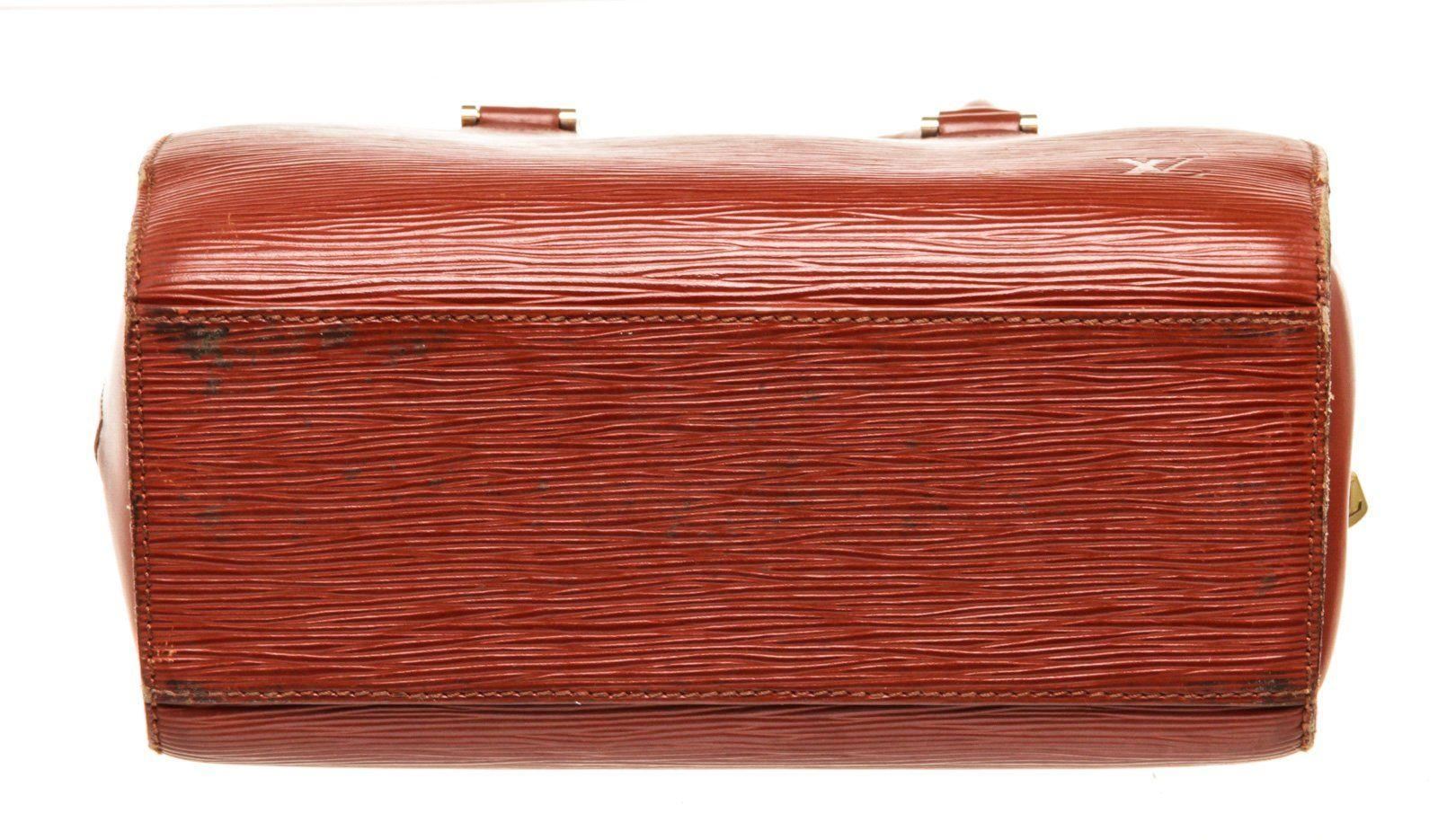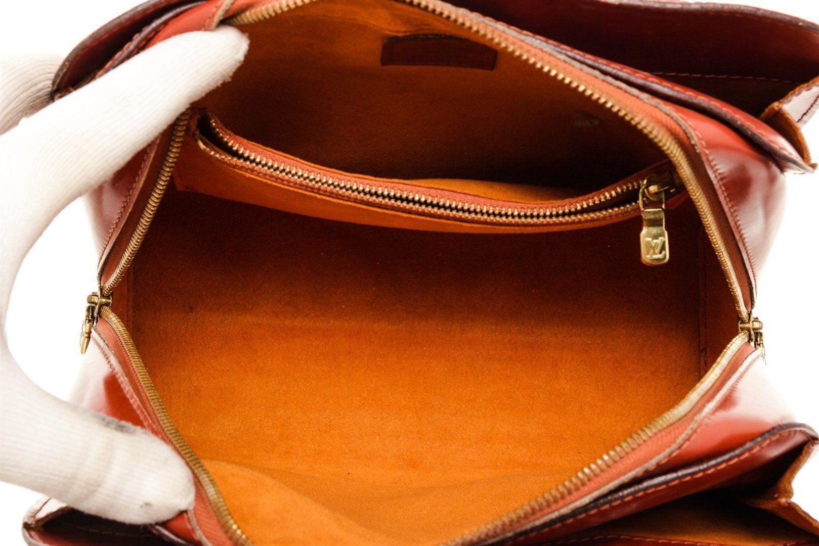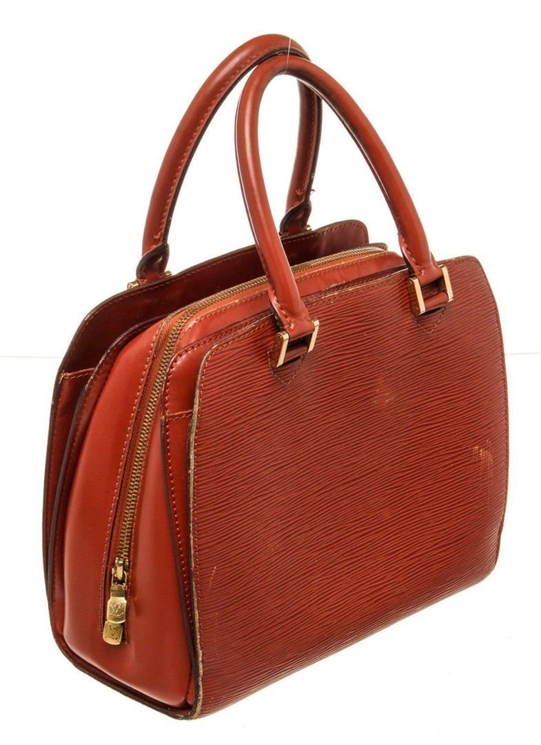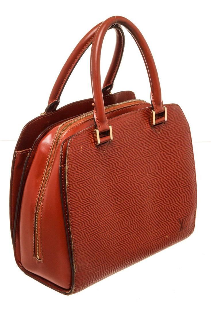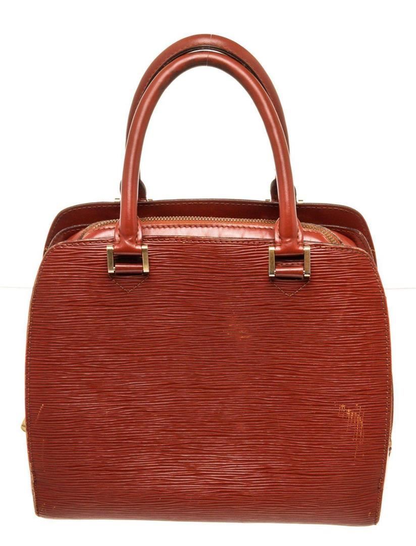 Louis Vuitton Brown Pont Neuf Handbag with epi leather gold-tone hardware, trim tan vachetta leather, dual top handle and zipper closure.