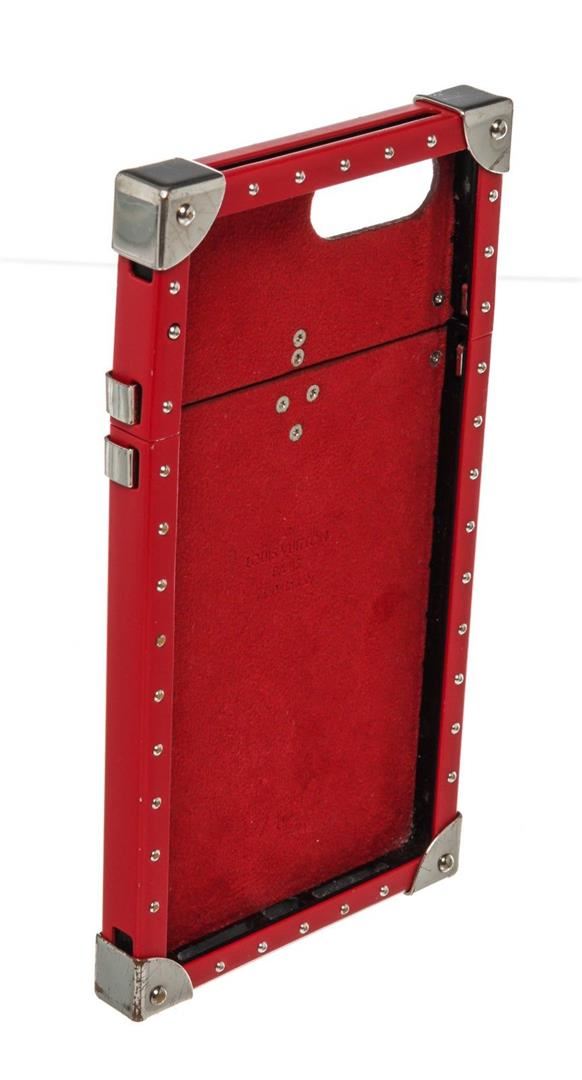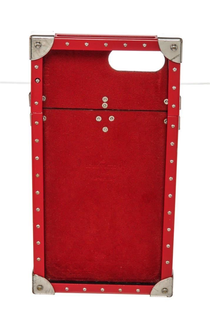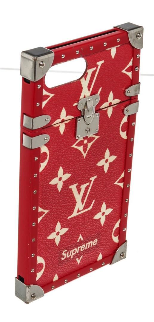 Louis Vuitton Red Supreme Monogram Eye Trunk Iphone 7 Case with silver-tone hardware.