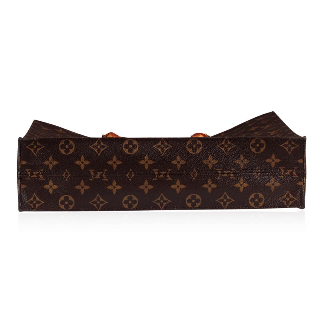 An Authentic Louis Vuitton Sac Plat NM Monogram canvas. Rounded Toron Handles with natural cowhide leather trim. Shiny Golden Brass metallic pieces. This bag has two pockets - one for smart phone