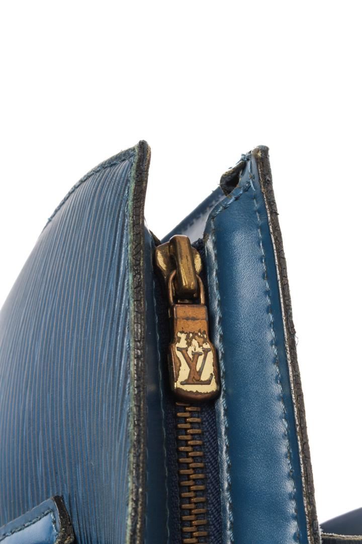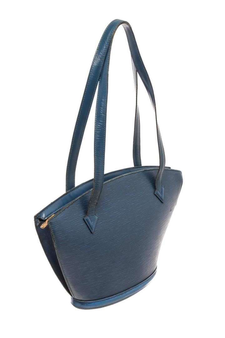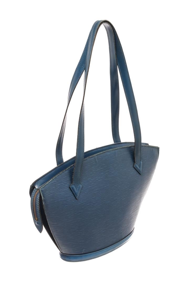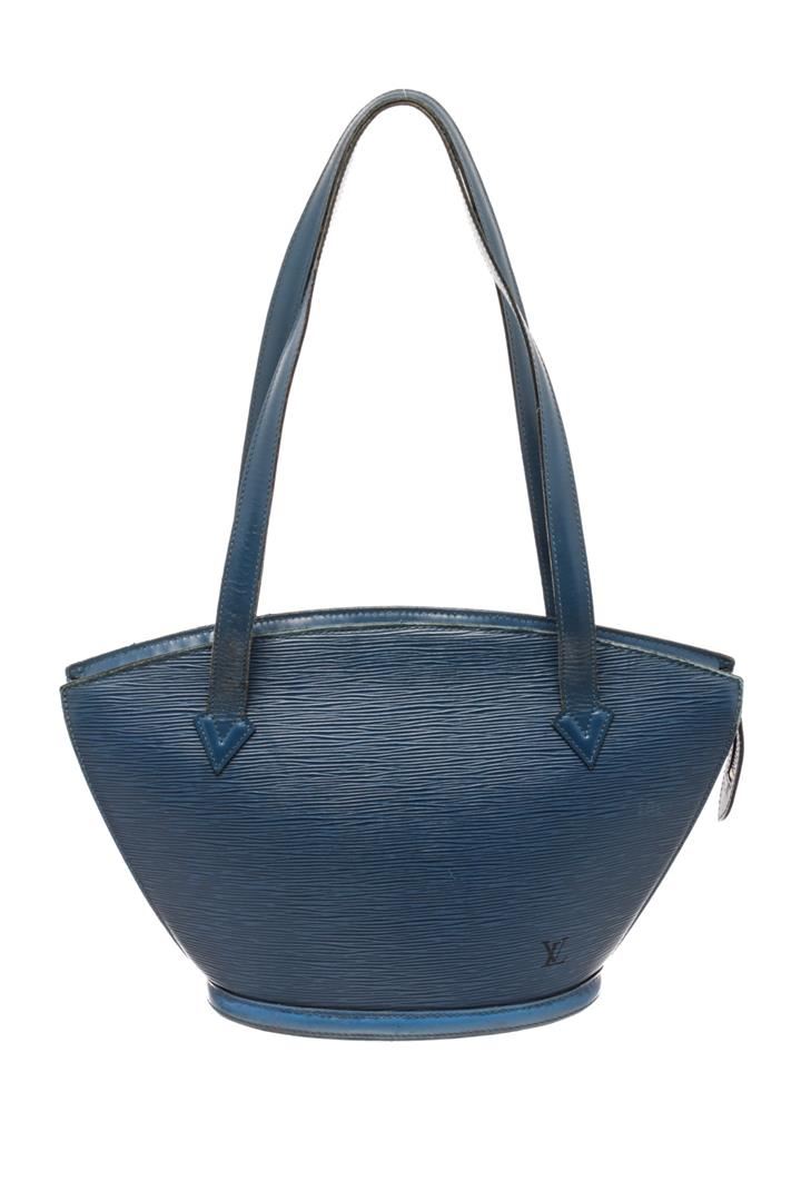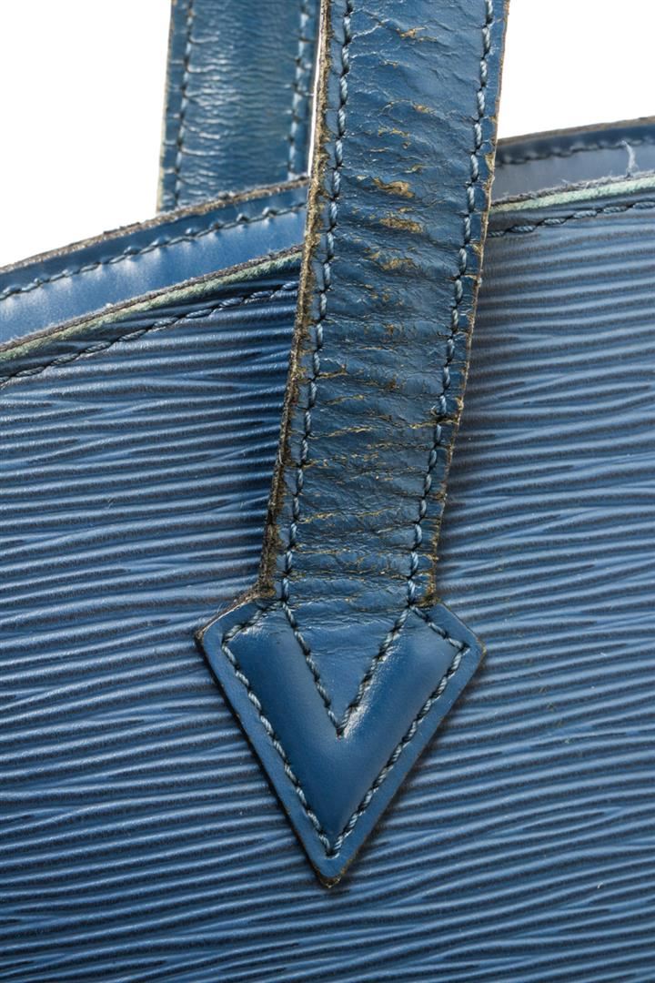 Louis Vuitton Saint Jaques Shoulder Bag. Brand: Louis Vuitton, Style: Saint Jaques, Type: Shoulder Bag, Exterior color: Blue Epi, Exterior material: Leather, Interior color: Blue, Interior material: Suede, Length: 10.5, Width: 6.75, Height: 11.5. Item is