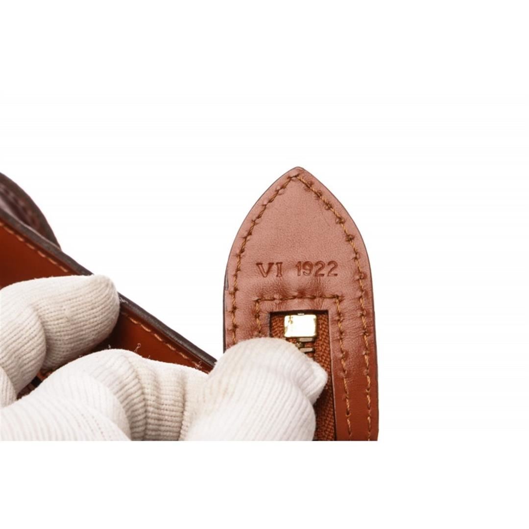 Sienna brown Louis Vuitton St. Jacques PM with brass hardware, dual flat shoulder straps, stamped monogram accent at front corner, tonal Alcantara lining, single pocket at interior wall and zip closure at top. Item is Pre-Owned.