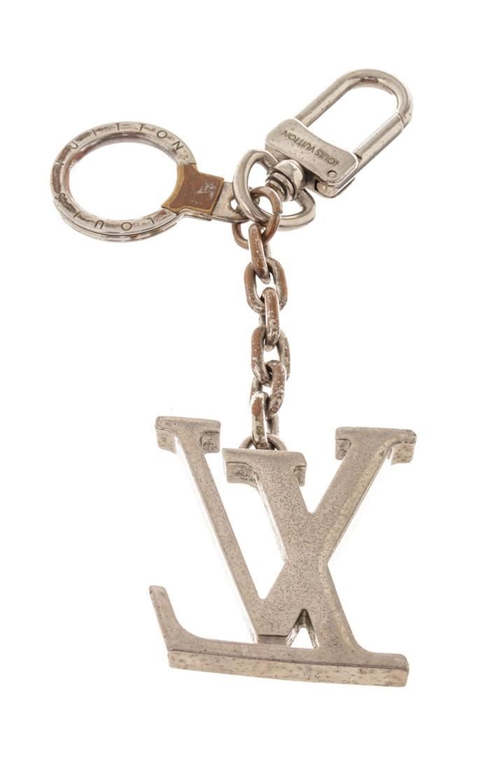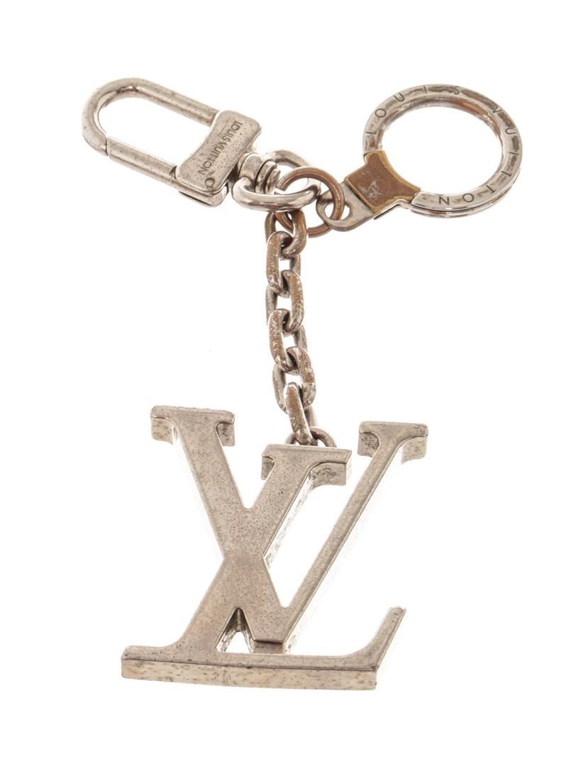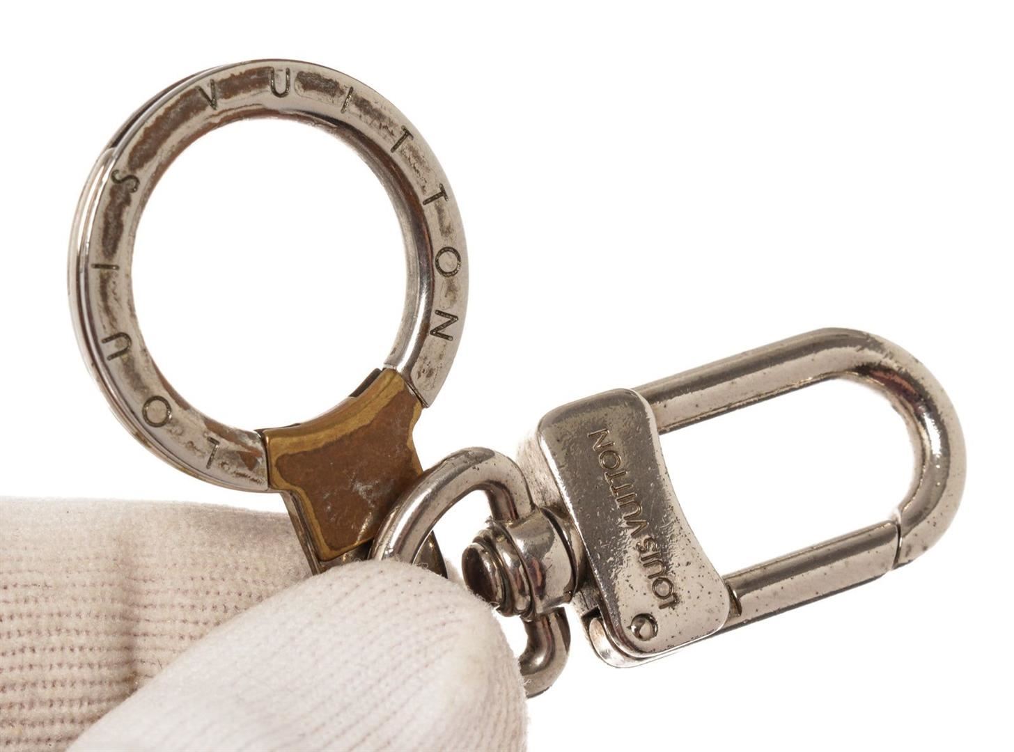 Louis Vuitton Silver-tone Initiales Key Holder is made of shiny palladium-finish metal and lacquer, also key ring and snap hook engraved with the Louis Vuitton signature.