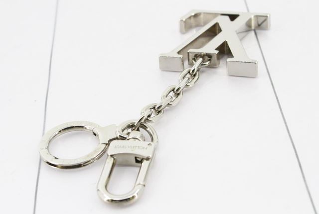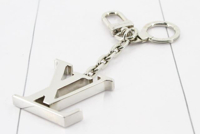 Men's silver-tone Louis Vuitton Initiales Facettes keyholder with silver-tone hardware. Length: 5.5" Width: 1.75"