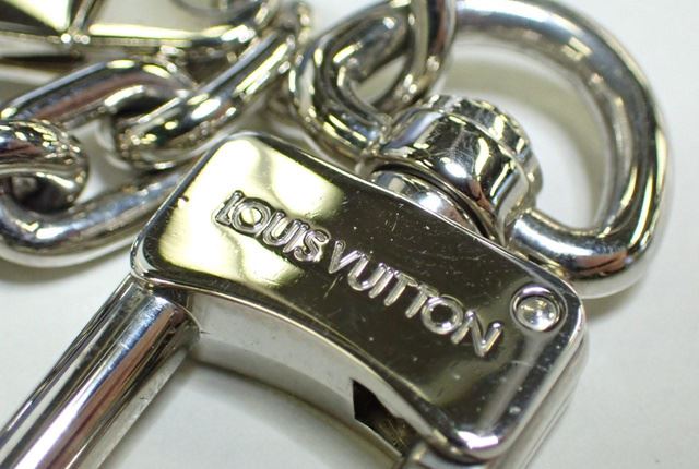 Men's silver-tone Louis Vuitton Initiales Facettes keyholder with silver-tone hardware. Length: 5.5" Width: 1.75"