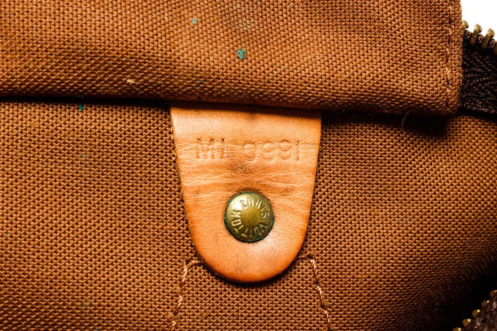 One Louis Vuitton Speedy 25 Handbag. Item is sold AS-IS. All available information is listed in the description and shown in the photo. Louis Vuitton Speedy 25 cm handbag with monogram coated canvas exterior, vanchetta leather top handles, brown fabric lining, one interior slip pocket, top zip closure, and gold-tone hardware.
