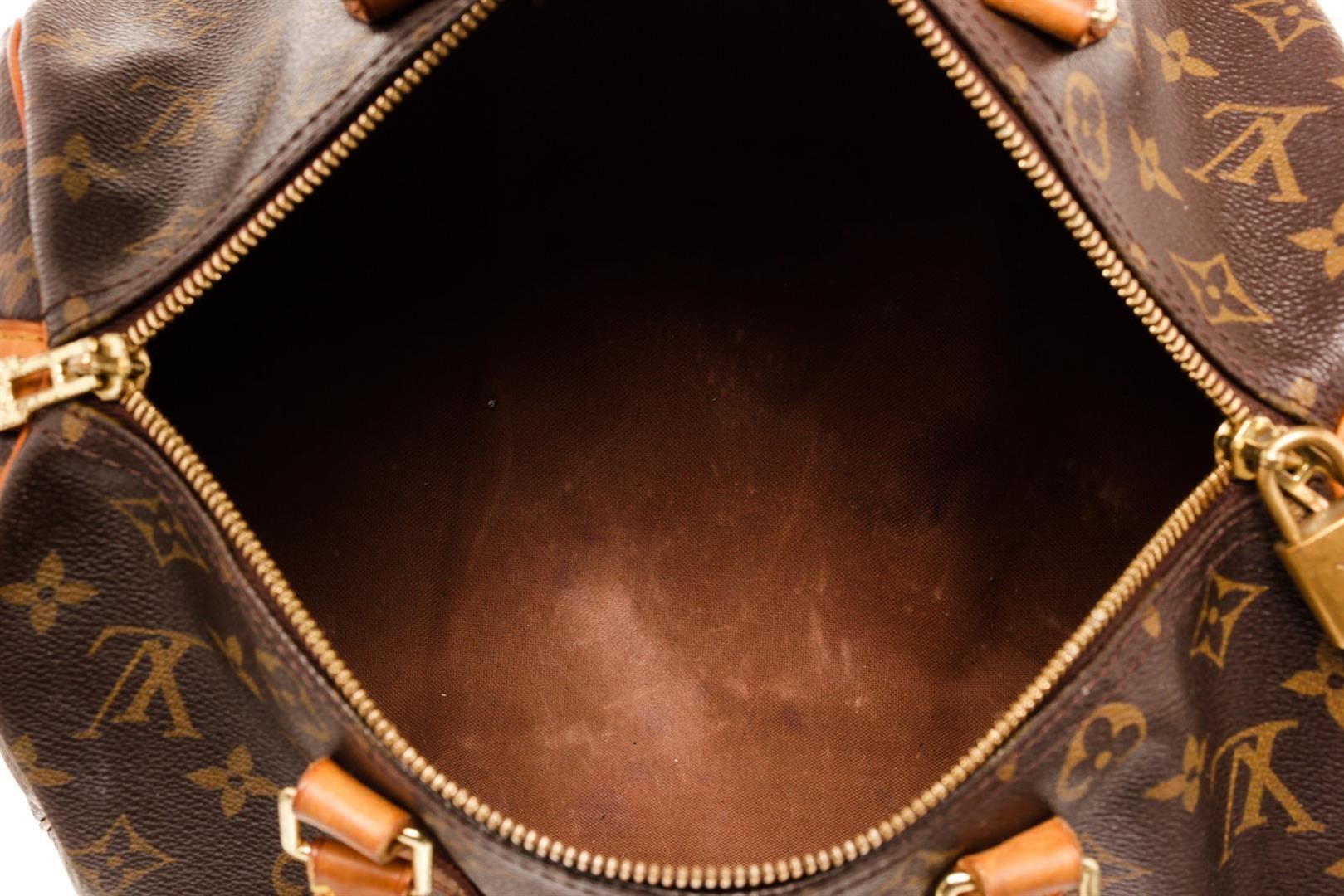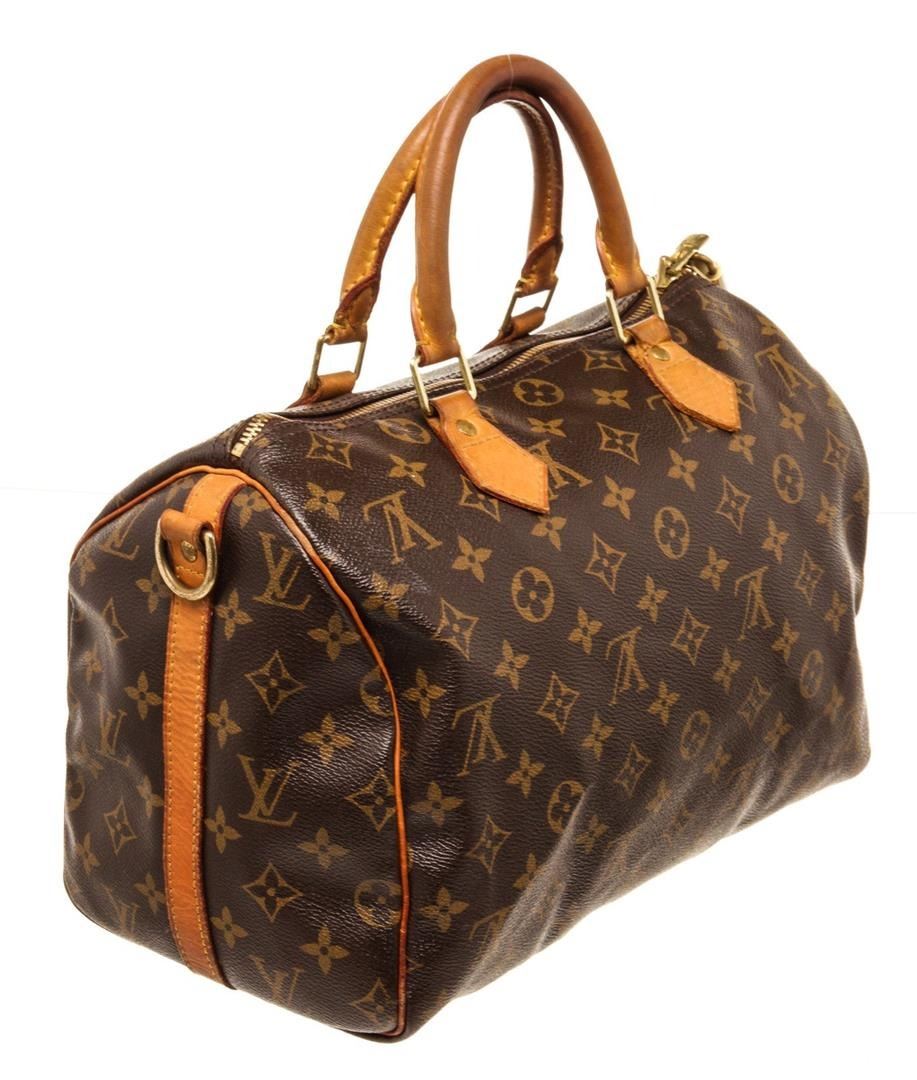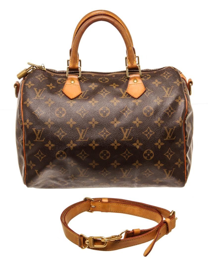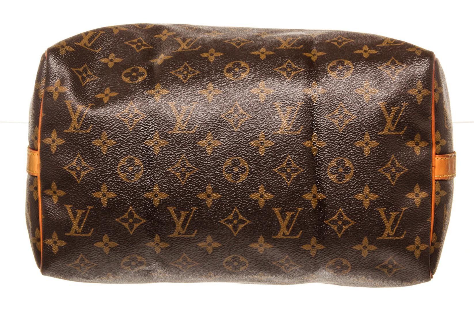 Louis Vuitton Speedy 30 Bandouliere Boston Bag Brown Monogram Coated Canvas. Brand: Louis Vuitton, Style: Speedy 30 Bandouliere, Type: Boston Bag, Exterior Color: Brown Monogram, Exterior Material: Coated Canvas, Exterior Pockets: None, Interior Color: Brown, Interior Material: Canvas, Interior Pockets: One Slip, Closure: Zip, Handle/Strap Type: Top Handle/Adjustable Strap, Length: 12, Width: 7, Height: 8, Handle Drop: 3, Strap Drop: 21. Condition: Vachetta is worn. Item is sold AS-IS and all information pertaining to this lot is available in the photos or this description.