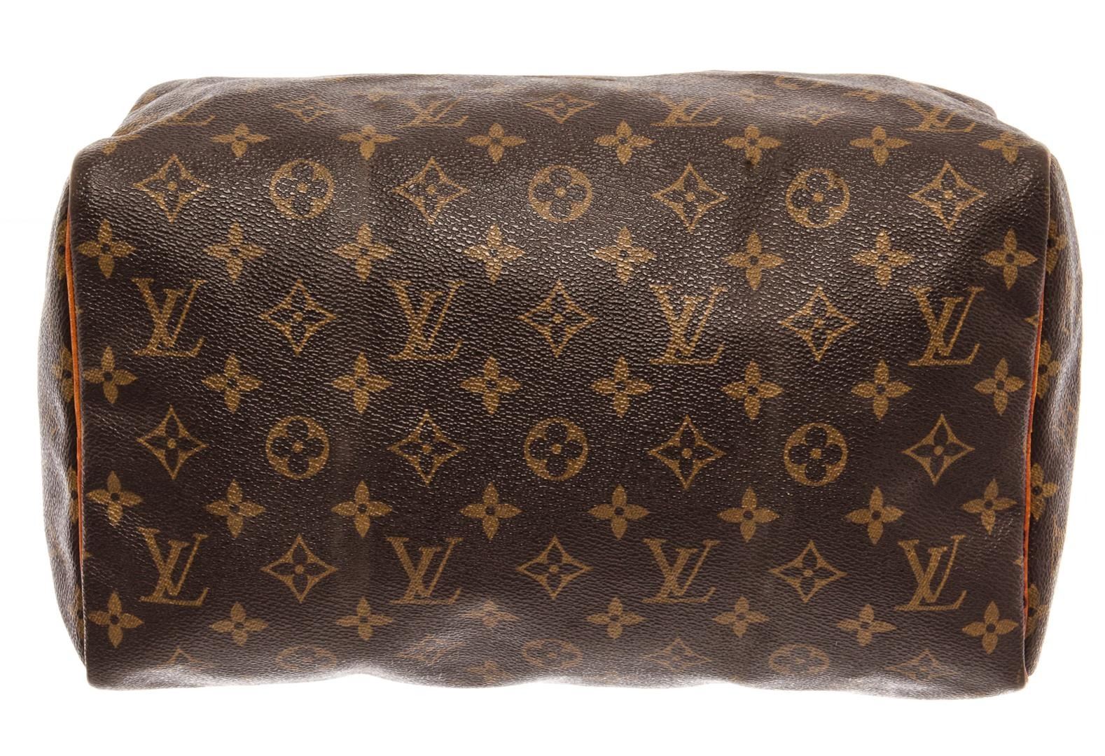 Louis Vuitton Speedy 30 Boston Bag. Brand: Louis Vuitton, Style: Speedy 30, Type: Boston Bag, Exterior color: Brown Monogram, Exterior material: Coated Canvas, Interior color: Brown, Interior material: Canvas, Length: 12, Width: 7, Height: 8. Item is sold