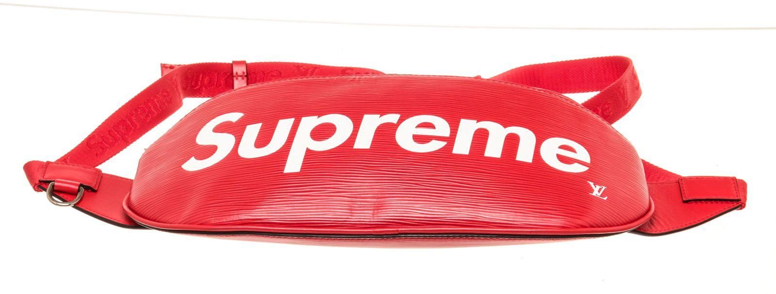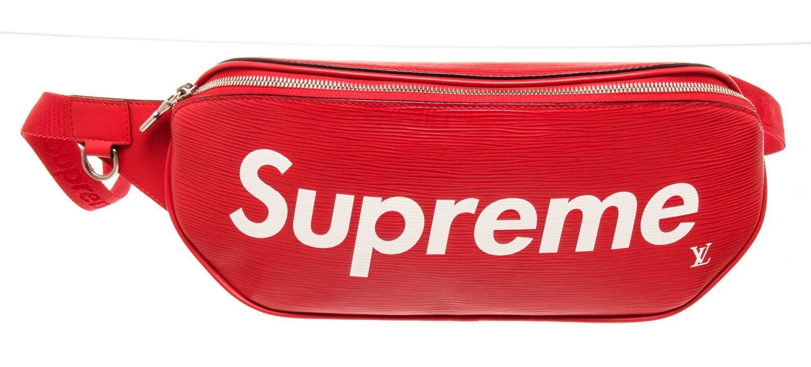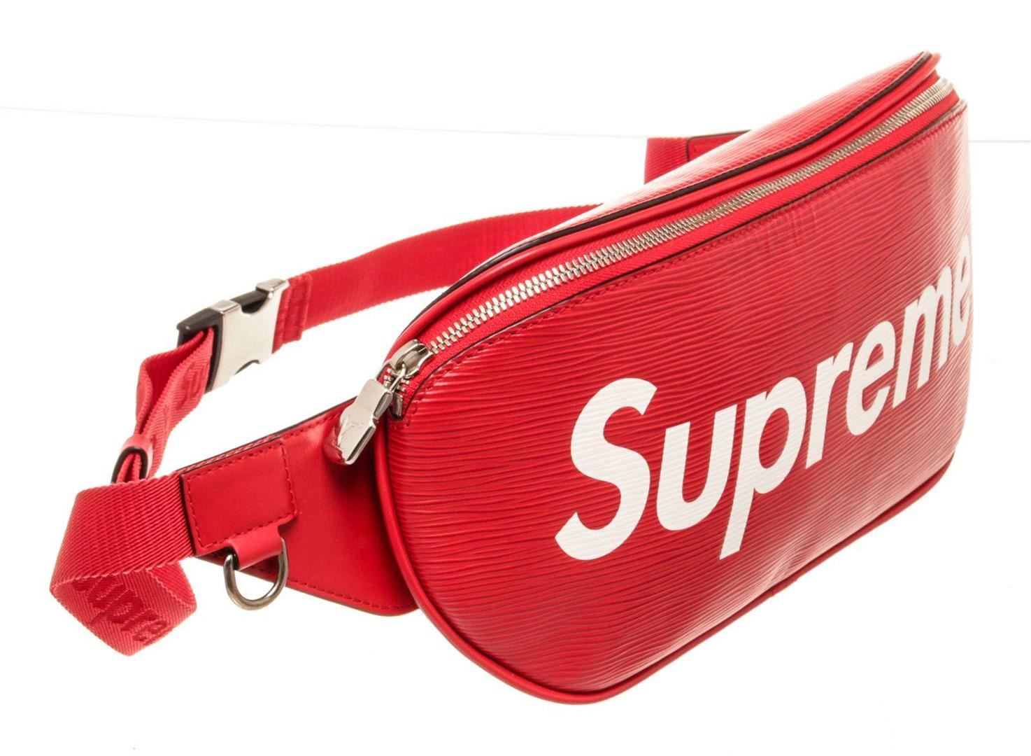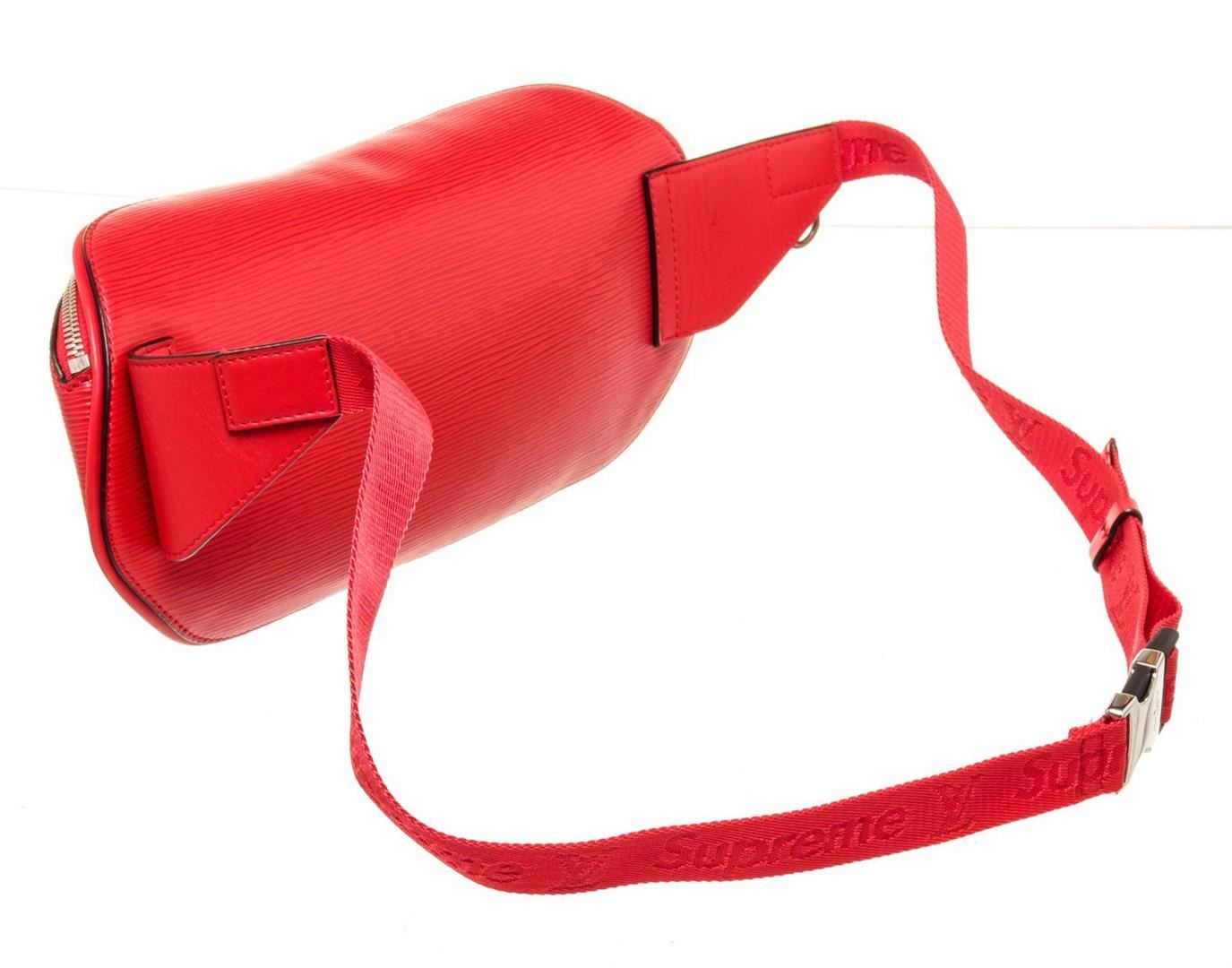 Louis Vuitton Red Supreme epi leather with silver hardware, suede lining, adjustable nylon logo strap, buckle strap and zipper closure. 14" x.5" x 6.5" • Shoulder Bag MEASUREMENTS: 14 in / 36 cm 0.5 in / 1 cm 6.5 in / 17 cmCONDITION: Pre-Owned Good