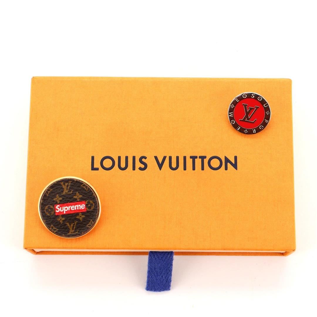 Louis Vuitton Supreme Pin Set Brooch Metal Monogram Red