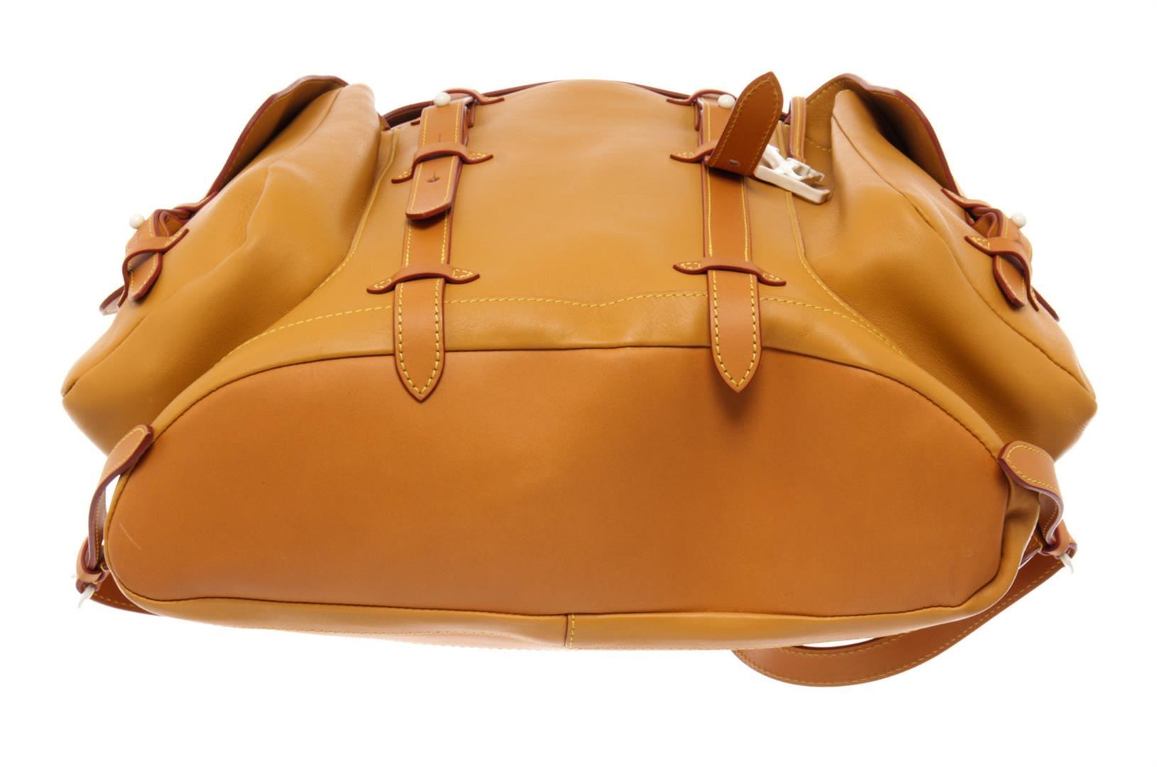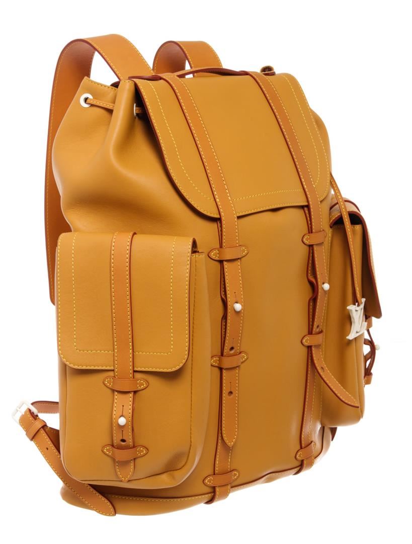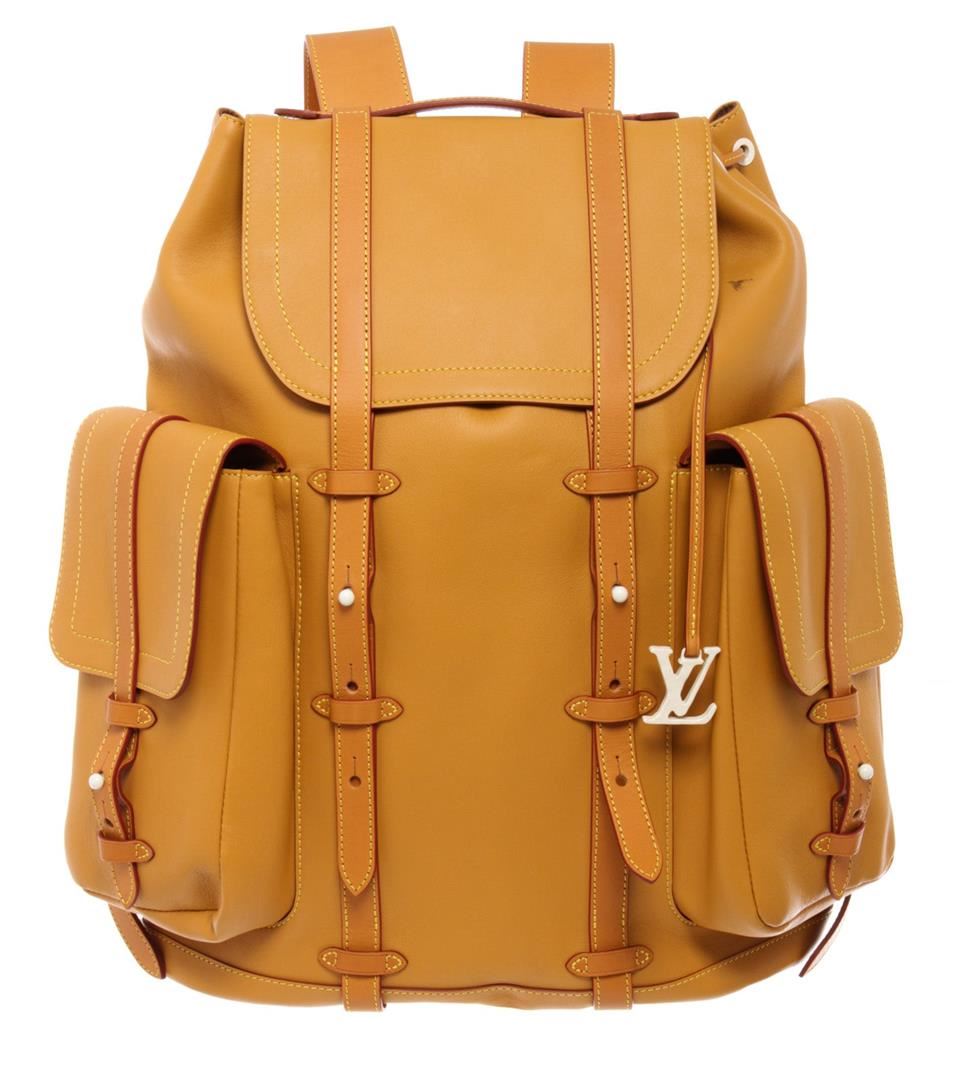 One Louis Vuitton Tan Vachetta Leather Christopher Straps Pocket GM Backpack. Item is sold AS-IS. All available information is listed in the description and shown in the photo. Brown Vachetta tan Louis Vuitton Christopher Backpack with silver-tone hardware, trim tan vachetta leather, exterior slip pocket, shoulder strap, and flap closure. 17.5"x19"x 8.5"/44.5cmx48.3cmx21.6cm