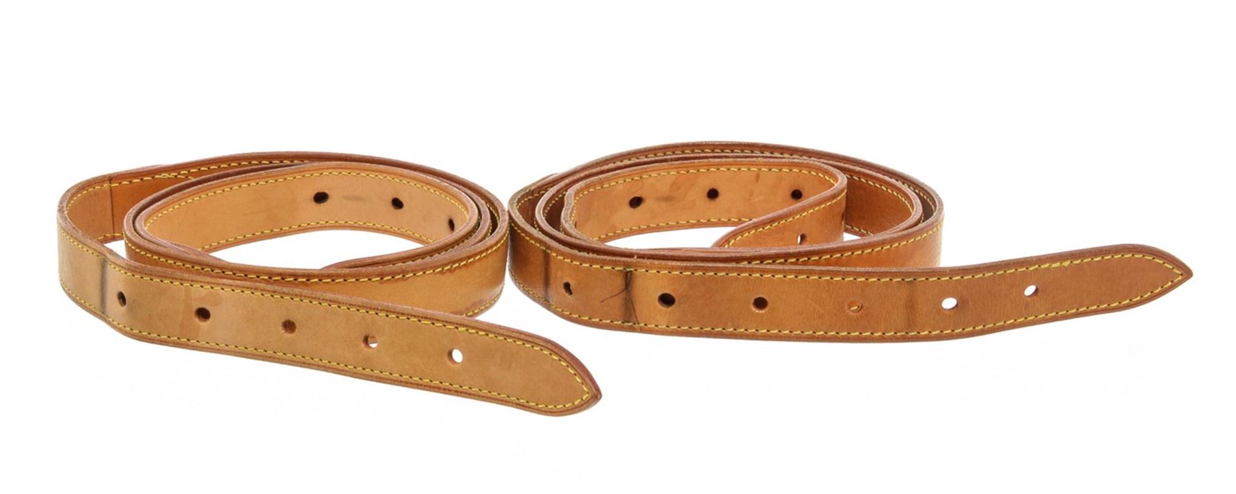 Tan Vachetta Leather Louis Vuitton straps with yellow contrast stitching. Authentic.