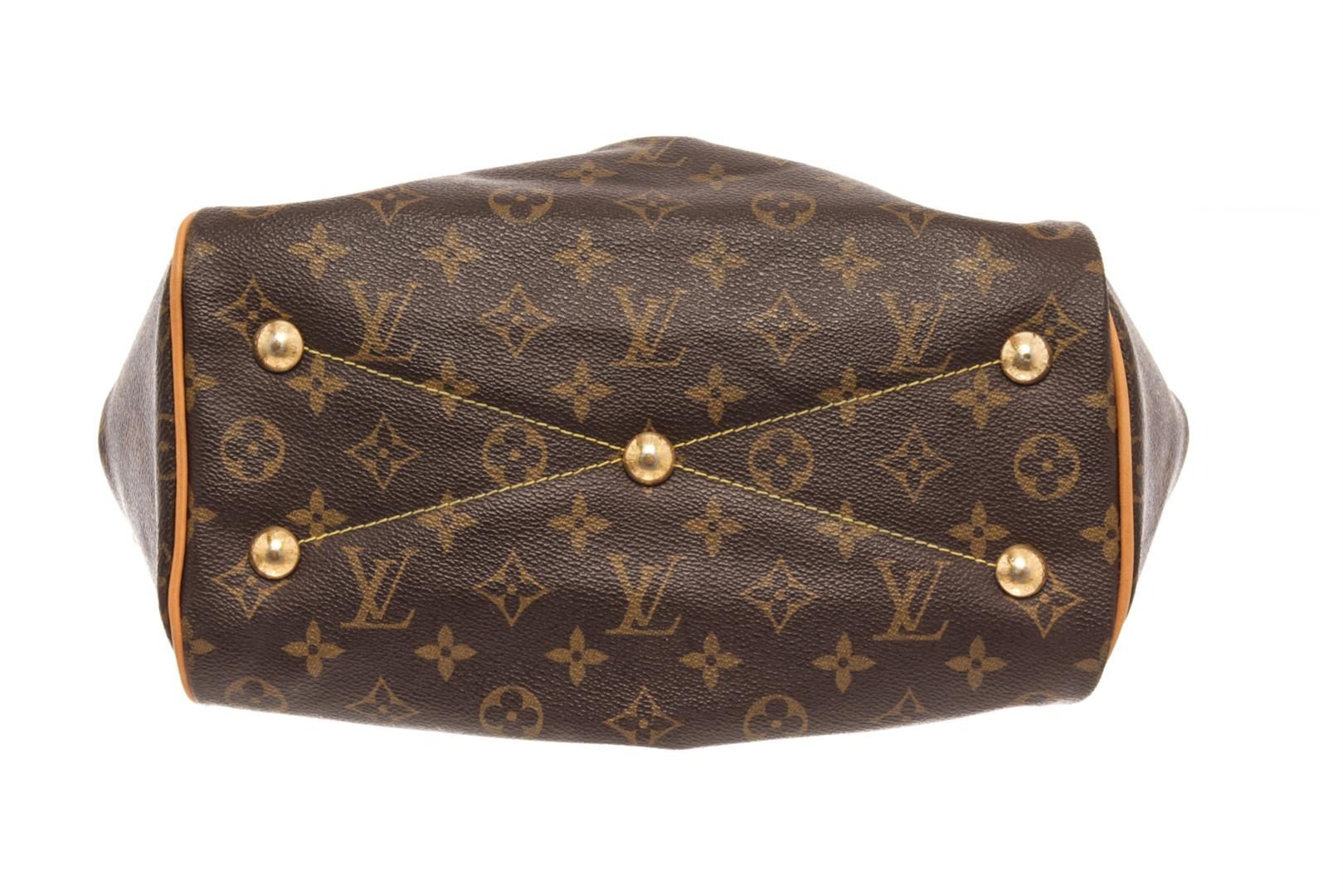 Louis Vuitton Tivoli PM Handbag. Brand: Louis Vuitton, Style: Tivoli PM, Type: Handbag, Exterior color: Brown Monogram, Exterior material: Coated Canvas, Interior color: Brown, Interior material: Canvas, Length: 11.5, Width: 6.25, Height: 8.25. Item is so