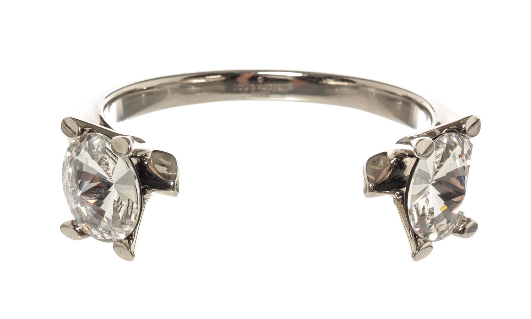 One Louis Vuitton V Cuff Metal with Crystals Silver. Item is sold AS-IS. All available information is listed in the description and shown in the photo. Louis Vuitton V Cuff Metal with Crystals Silver