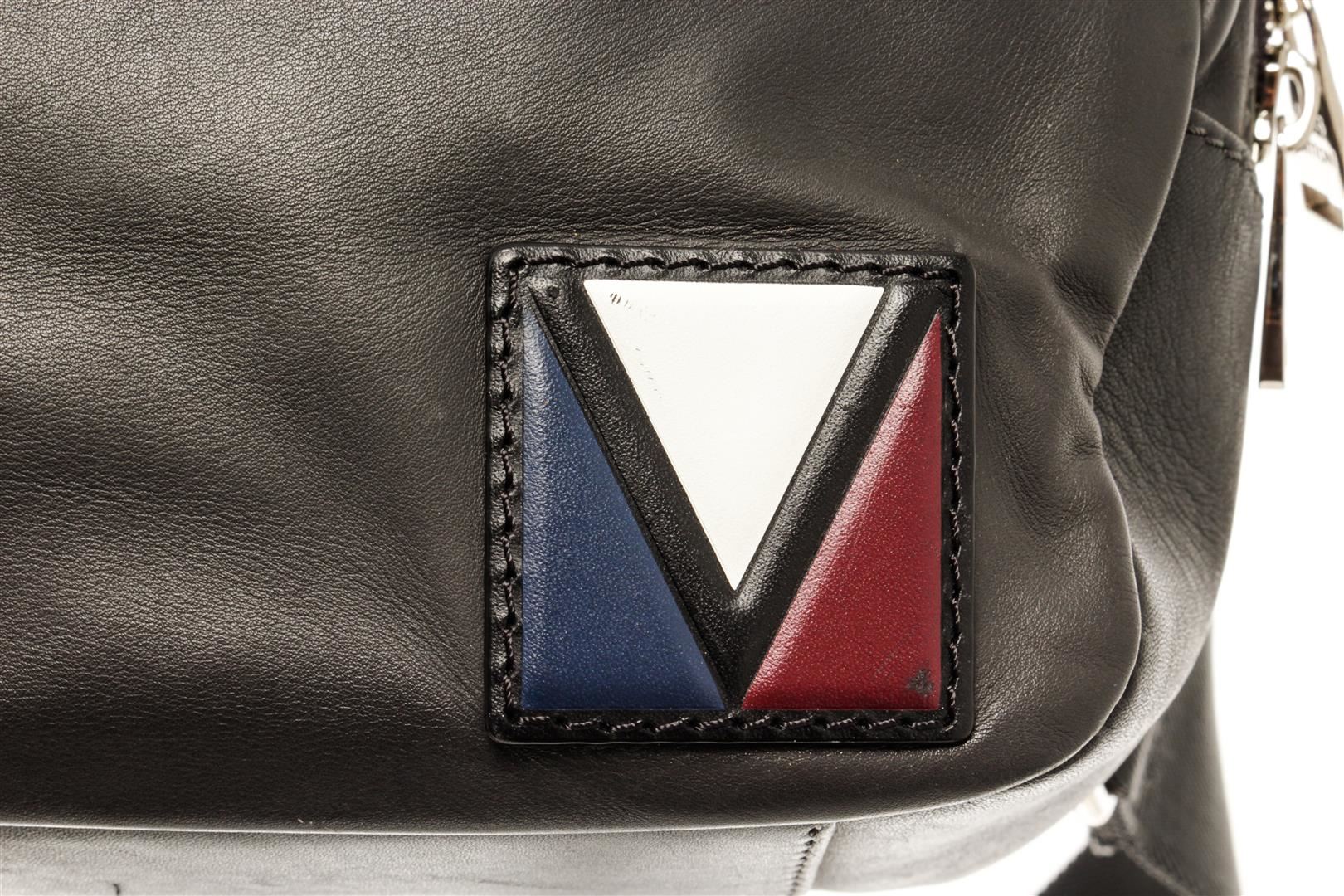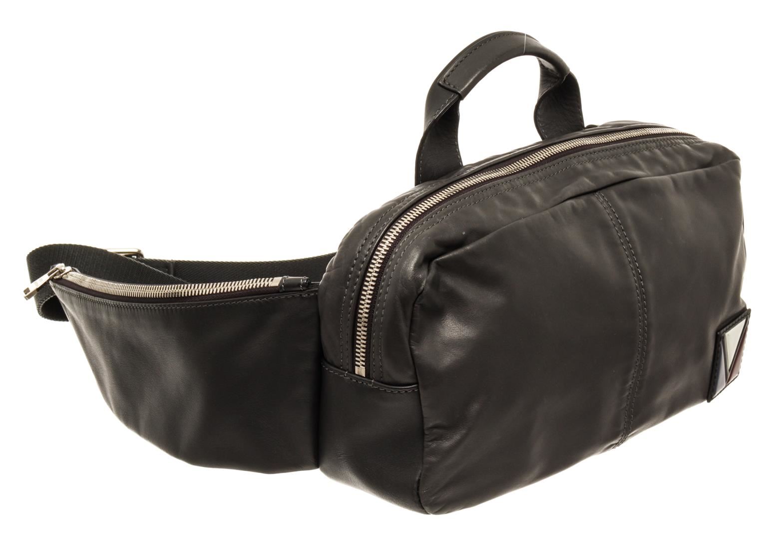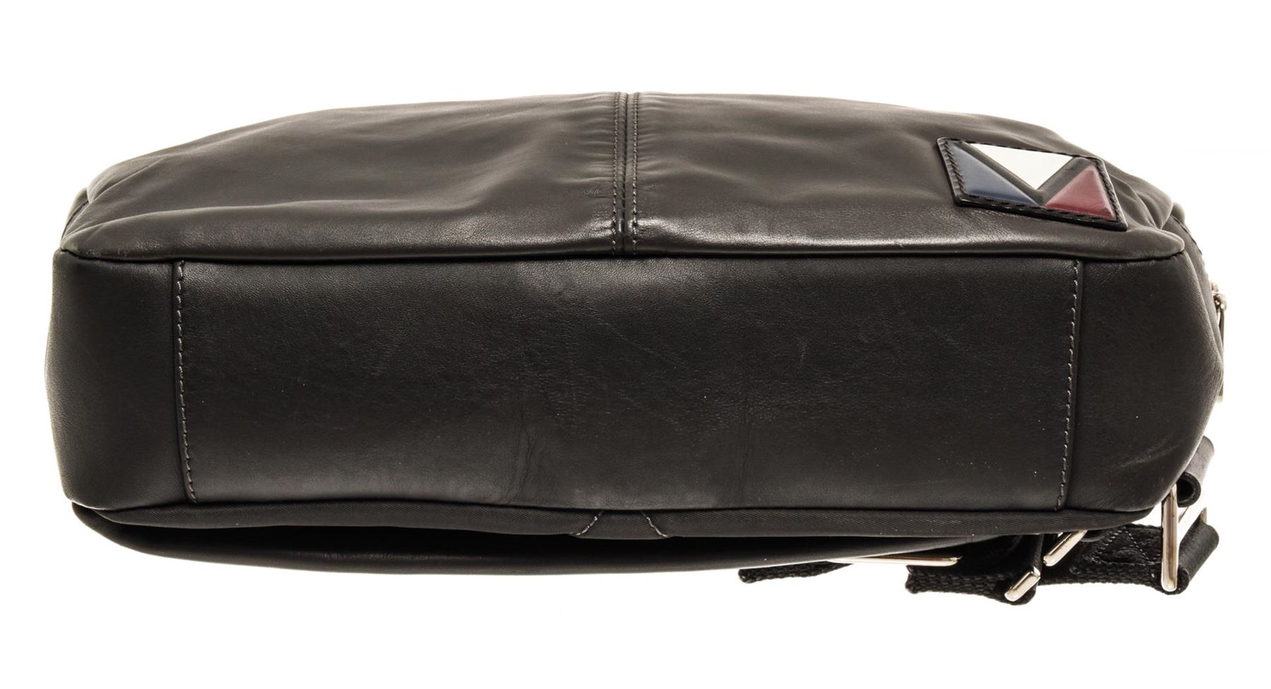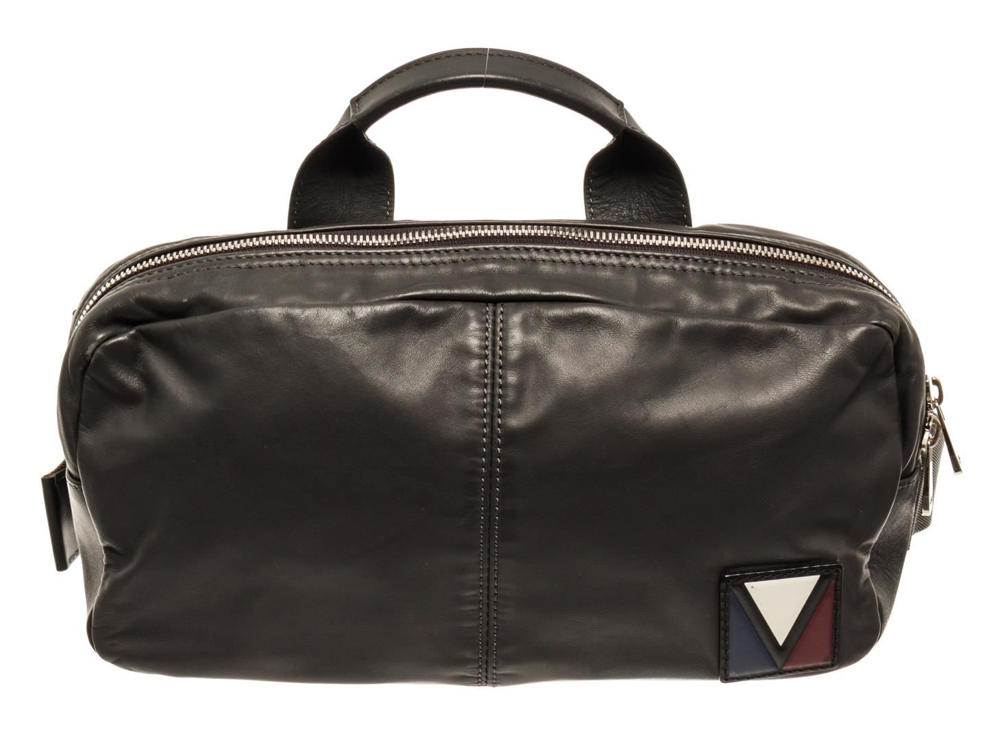 Louis Vuitton V Line Waist Bag Black Leather. Brand: Louis Vuitton, Style: V Line, Type: Waist Bag, Exterior Color: Black, Exterior Material: Leather, Exterior Pockets: One zip, Interior Color: Black, Interior Material: Nylon, Interior Pockets: Two Slip, Closure: Zip, Handle/Strap Type: Top handle/Adjustable, Length: 9, Width: 3, Height: 7.5, Handle Drop: 2.5, Strap Drop: 21. Condition: Logo is chipped. Item is sold AS-IS and all information pertaining to this lot is available in the photos or this description.