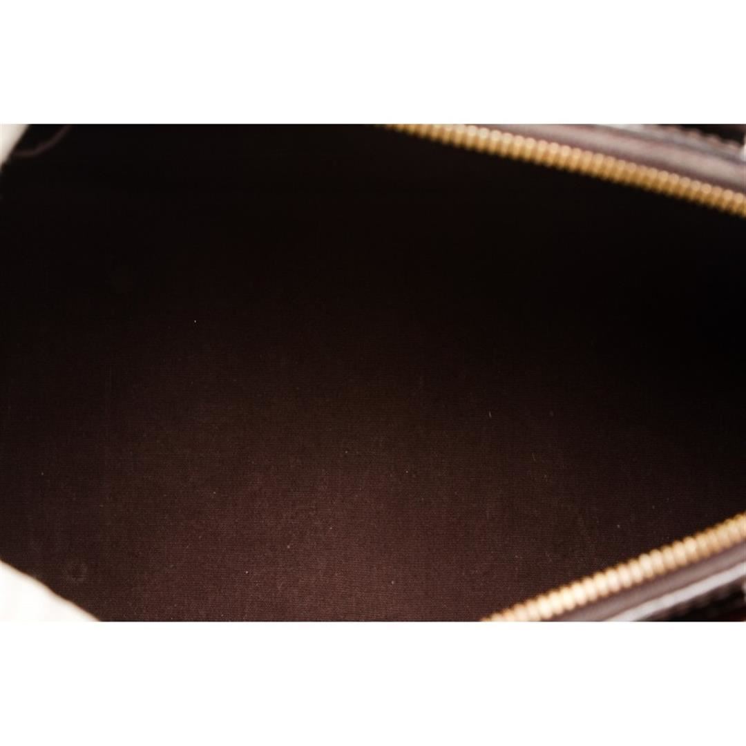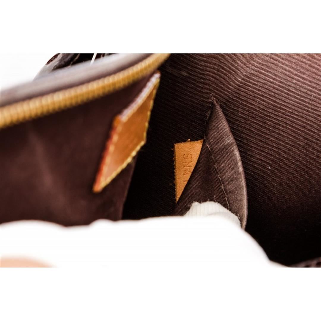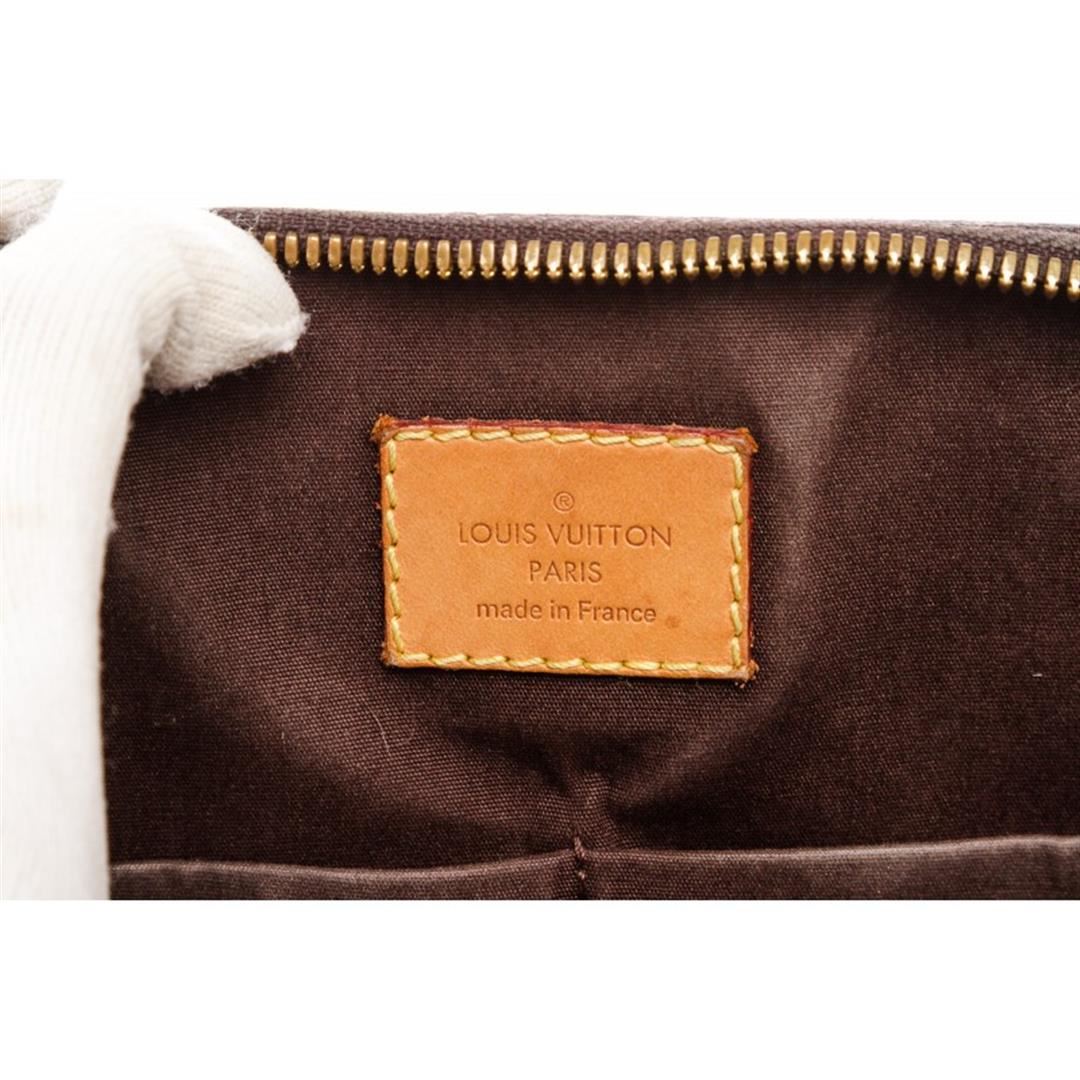 One Louis Vuitton Vernis Amarante Leather Monogram Alma PM Bag. Monogram Vernis leather Louis Vuitton Alma PM with brass hardware, dual rolled top handles, tonal canvas lining, dual interiorit pockets and two-way zip closure at top. Item is pre-owned.