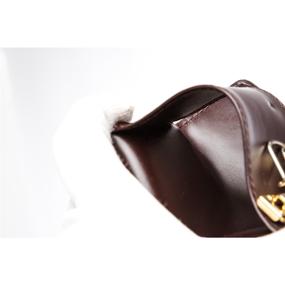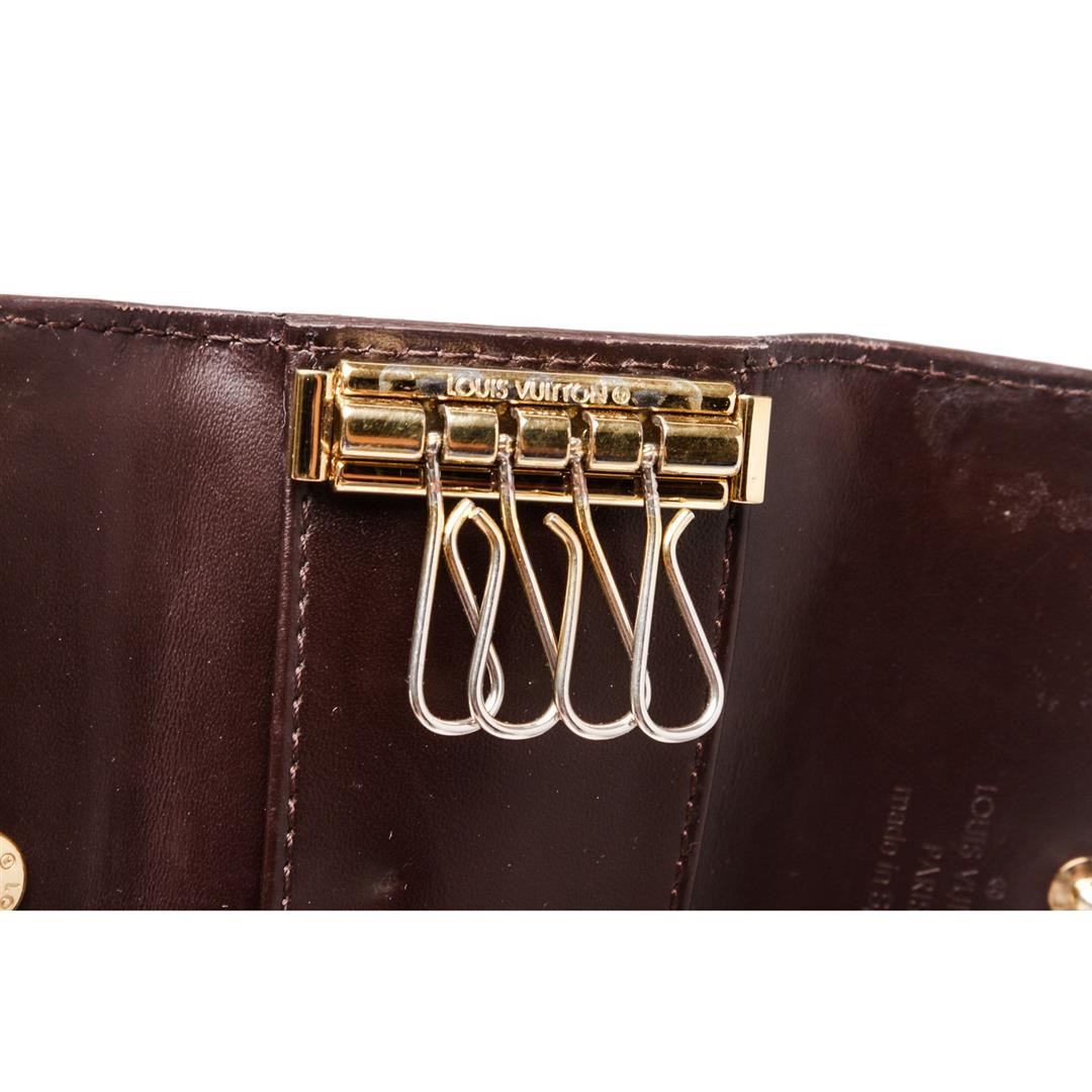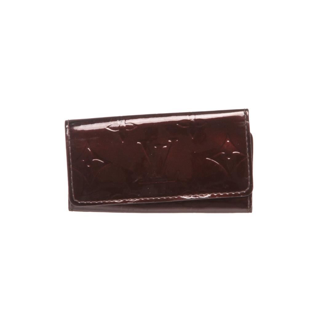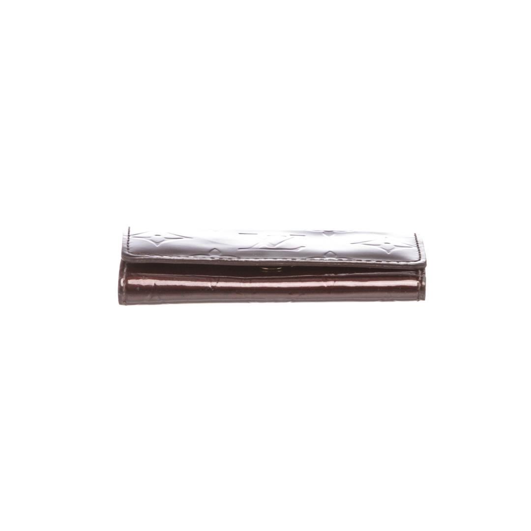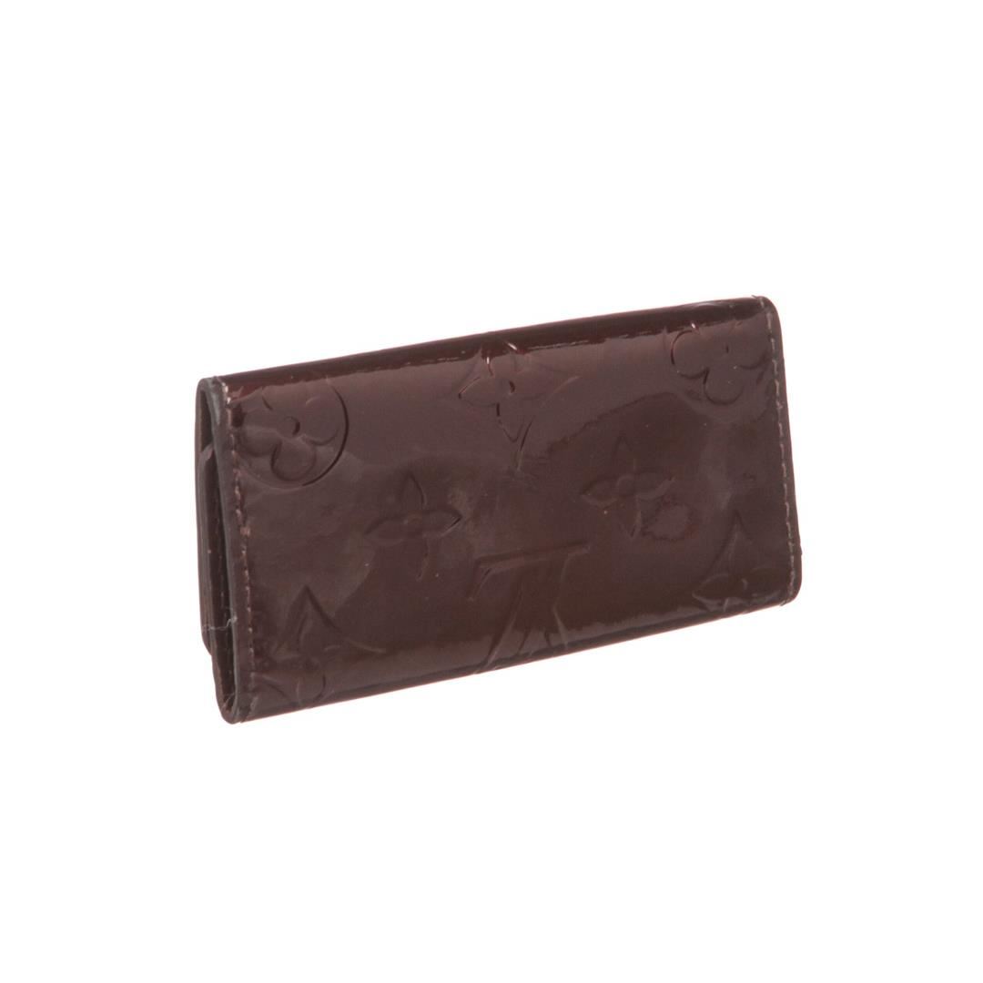 Vernis amarante Monogram Louis Vuitton Multicles 4 key holder with tonal leather, gold tone hardware and snap button closure. Box included. Item is pre-owned.