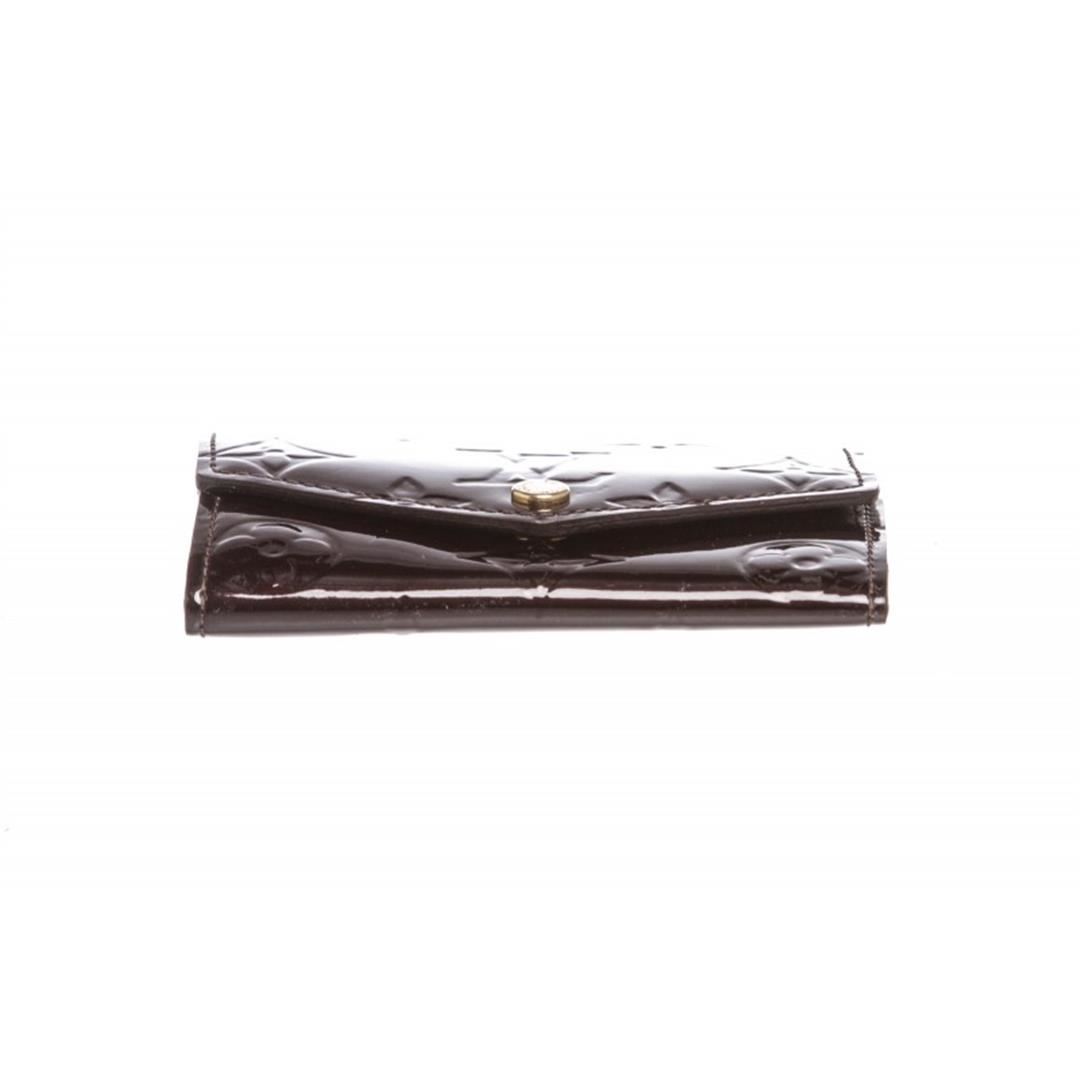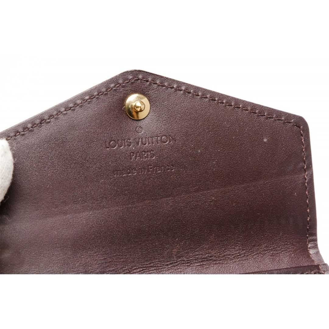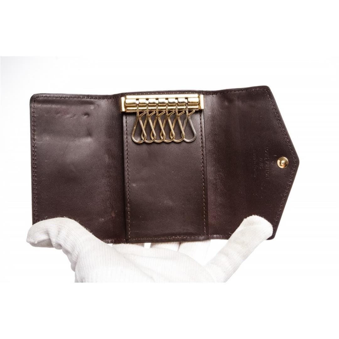 Louis Vuitton key holder with brass hardware, leather lining, six key hooks at interior and snap closure at front. Item is pre-owned.