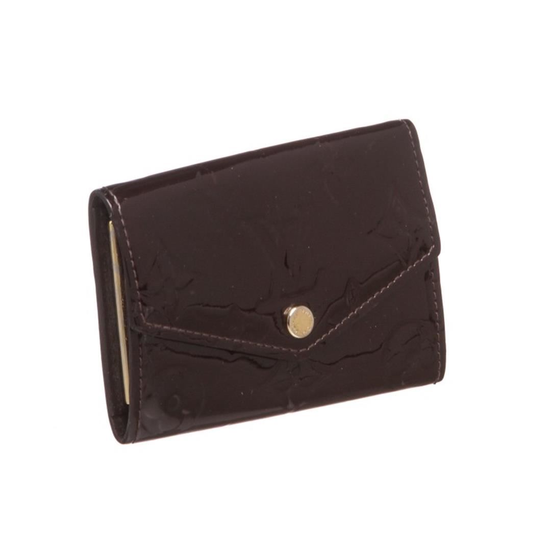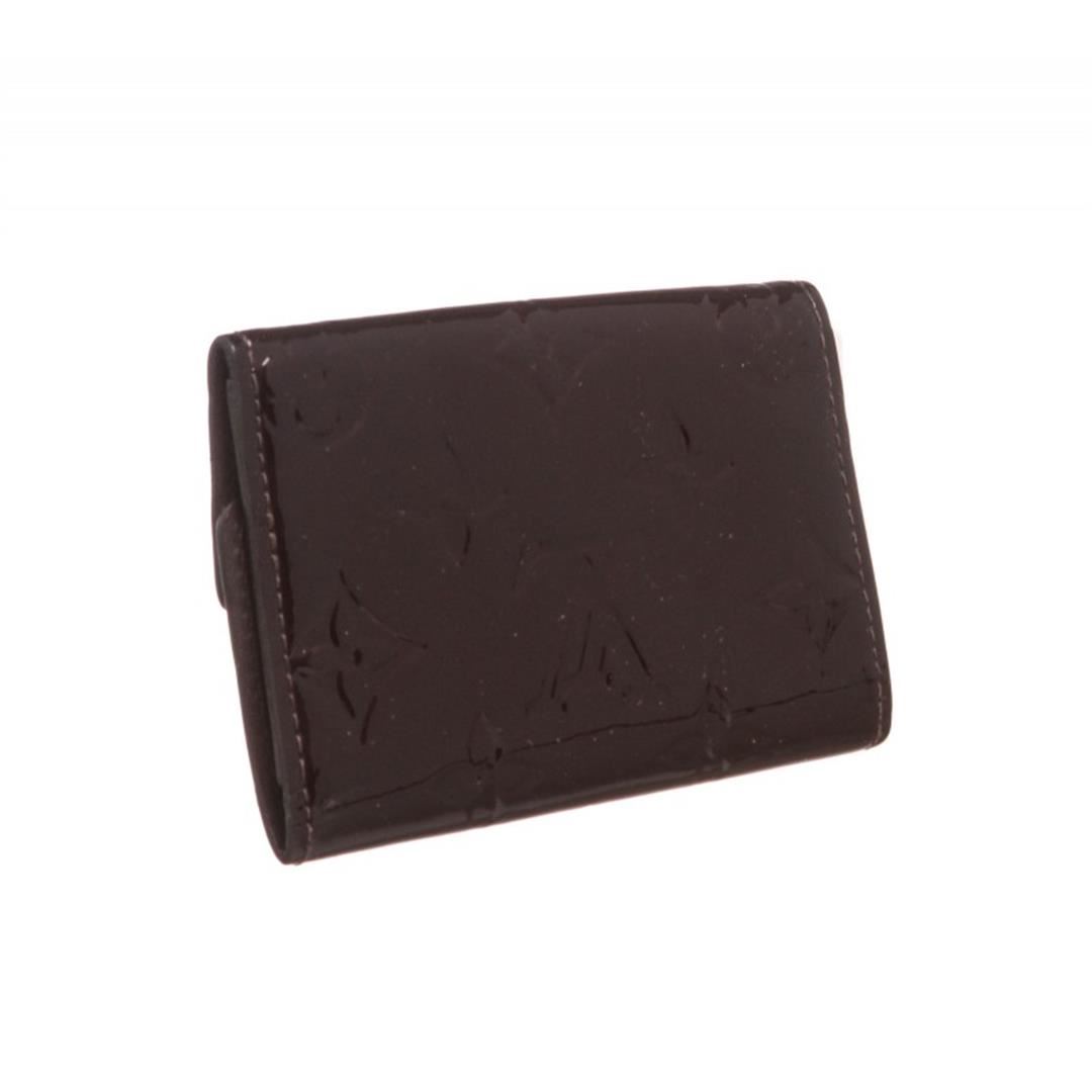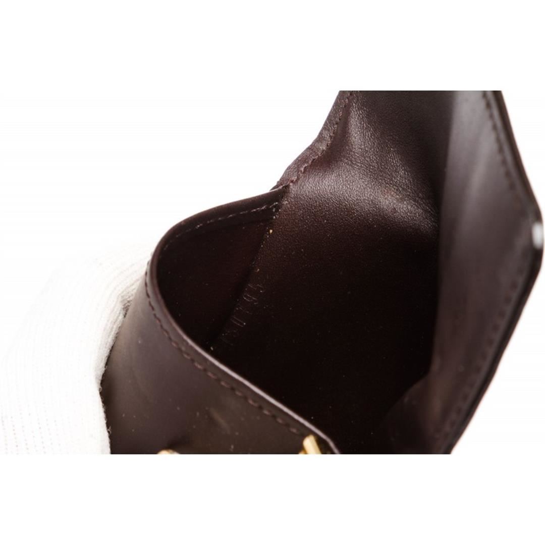 Louis Vuitton key holder with brass hardware, leather lining, six key hooks at interior and snap closure at front. Item is pre-owned.
