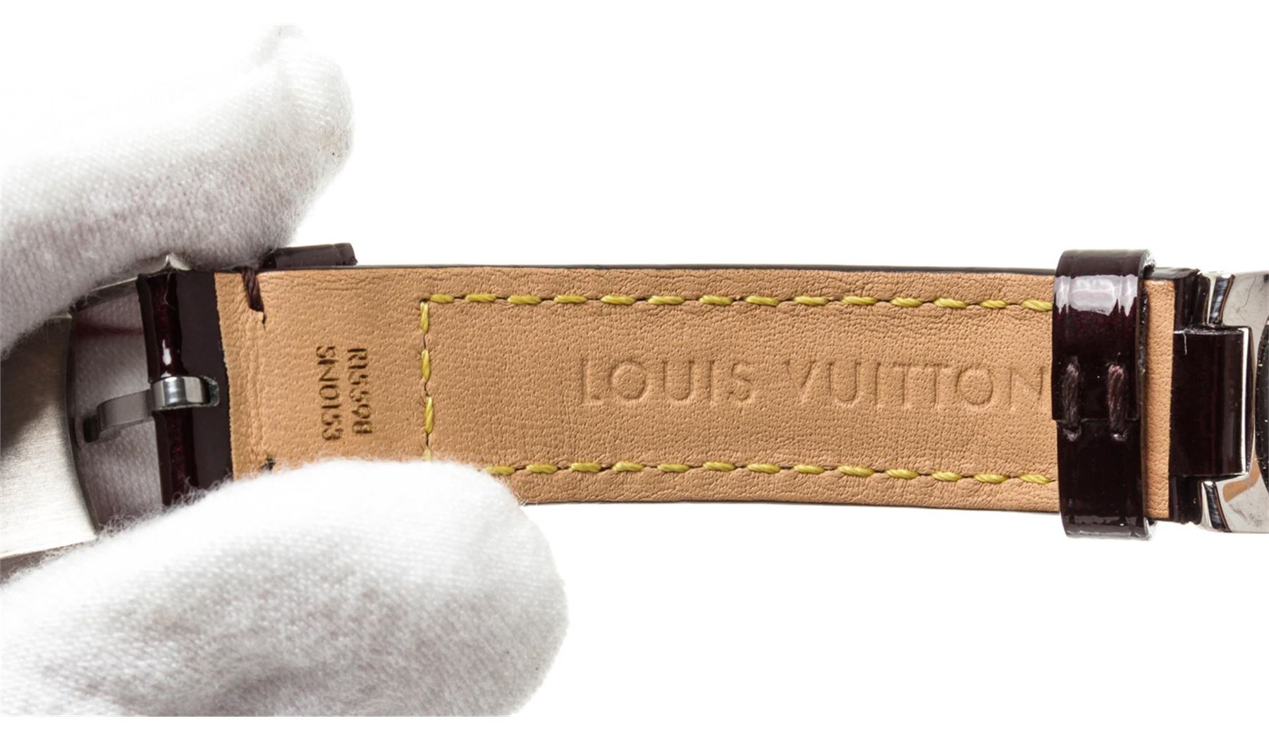 One Louis Vuitton Vernis Amarante Tambour Q12M3 Watch.