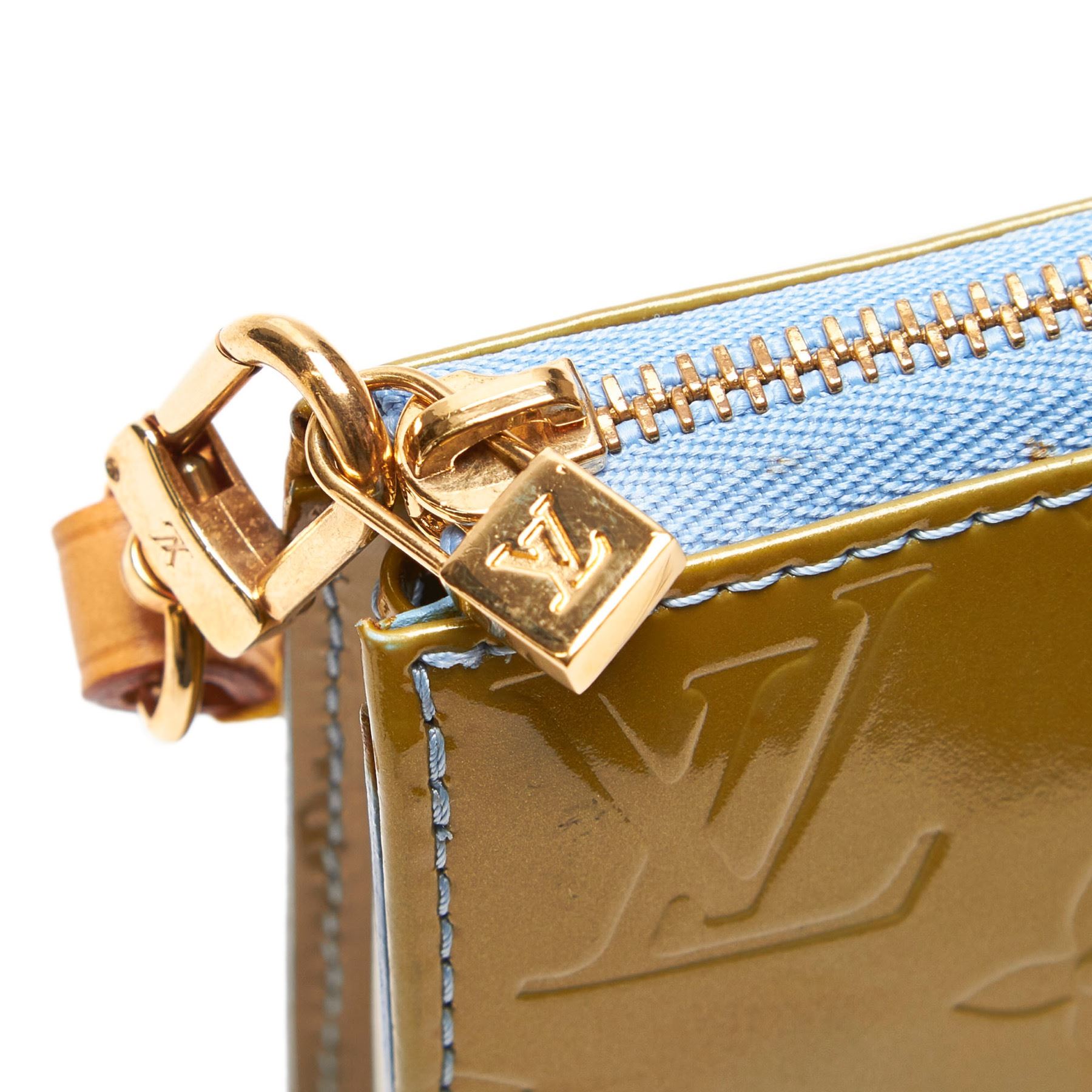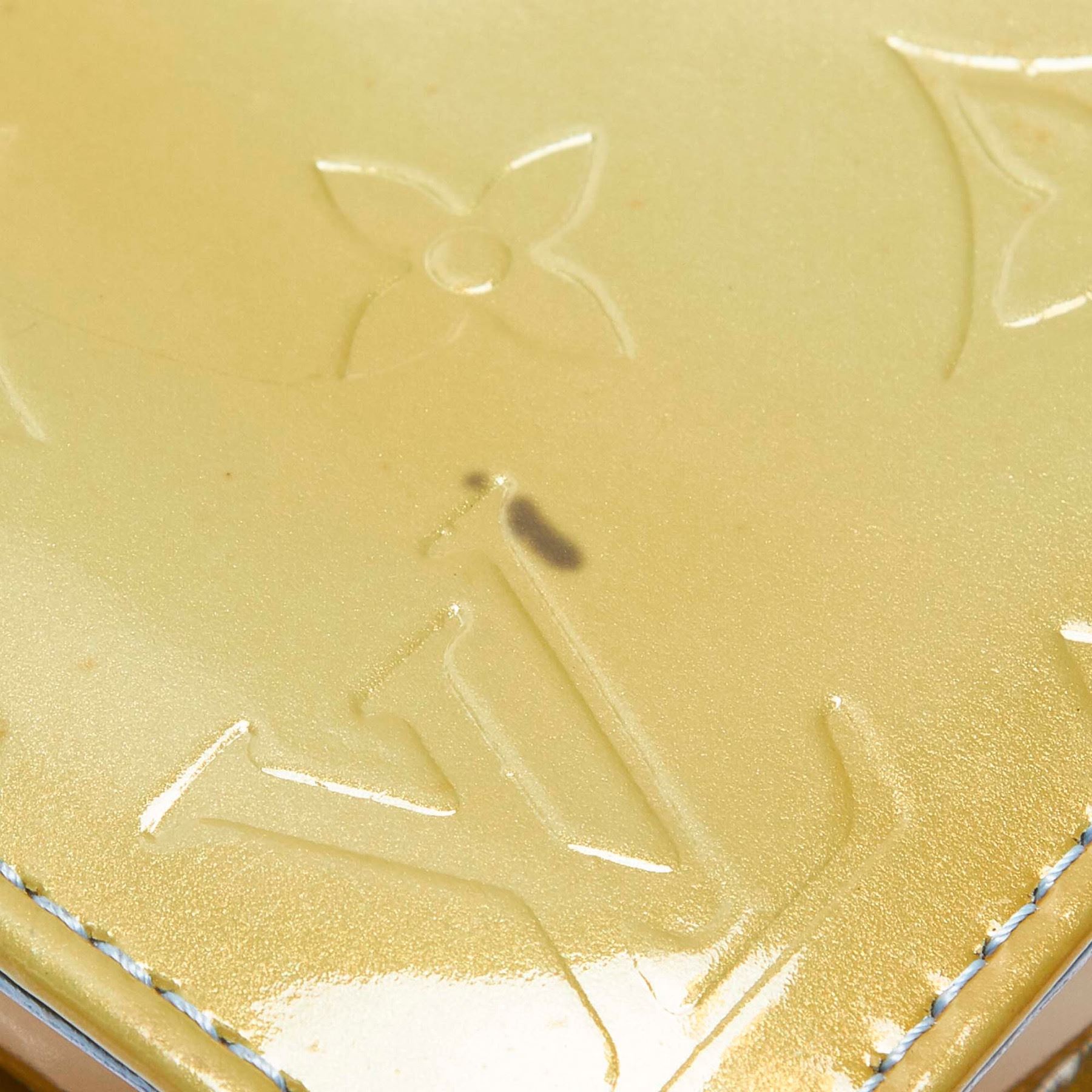 The Lexington features a vernis leather body, a flat leather strap, and a top zip closure. Leather x Vernis Leather x Leather x Vachetta Leather Green Exterior front is discolored. Exterior back is discolored. Interior lining is scratched. Size: 12 x 20 x 4 Card: NO. Louis Vuitton pieces do not come with an authenticity card—please refer to the production date code within the bag for its age and as an authenticity reference. Made in: FRANCE
