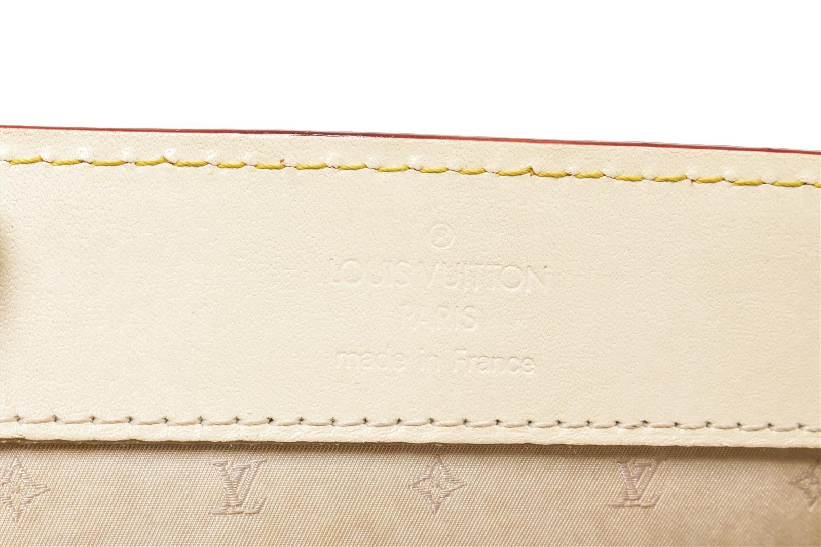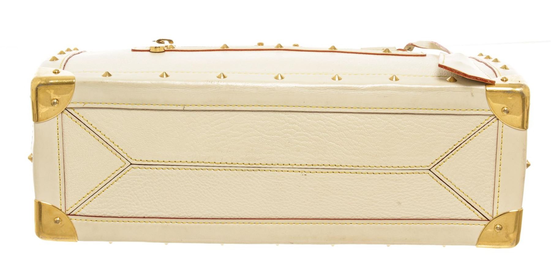 One Louis Vuitton White Leather Le Fabuleux Shoulder Bag. Item is sold AS-IS. All available information is listed in the description and shown in the photo. Louis Vuitton White Leather Le Fabuleux Shoulder Bag with top handle, exterior zipper pocket, fabric lining, zipper interior pocket, snap closure.