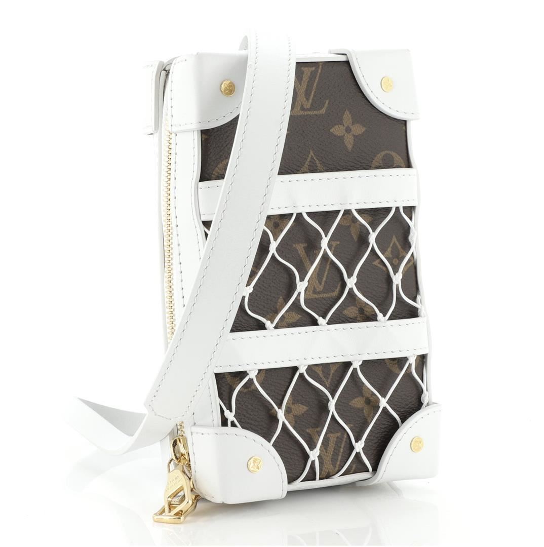 Louis Vuitton X NBA Monogram Canvas Soft Trunk Phone Box bag in Monogram canvas with reinforced leather corners is ideal for transporting smaller items. Textile lining, cowhide leather trim, double zip closure system, inside flat pocket, 3 credit card slo