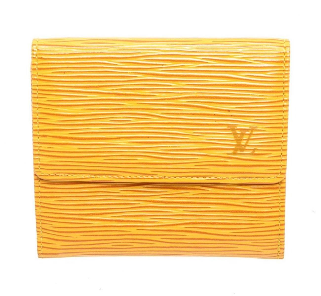 Louis Vuitton Yellow Elise Wallet with gold-tone hardware, interior cardholder pockets, leather lining and snap closure. Measurements: Length: 1 in / 3 cm Width: 4.25 in / 11 cm 4 in / 10 cmCONDITION: Pre-Owned Good overall, please see photographs for detail.