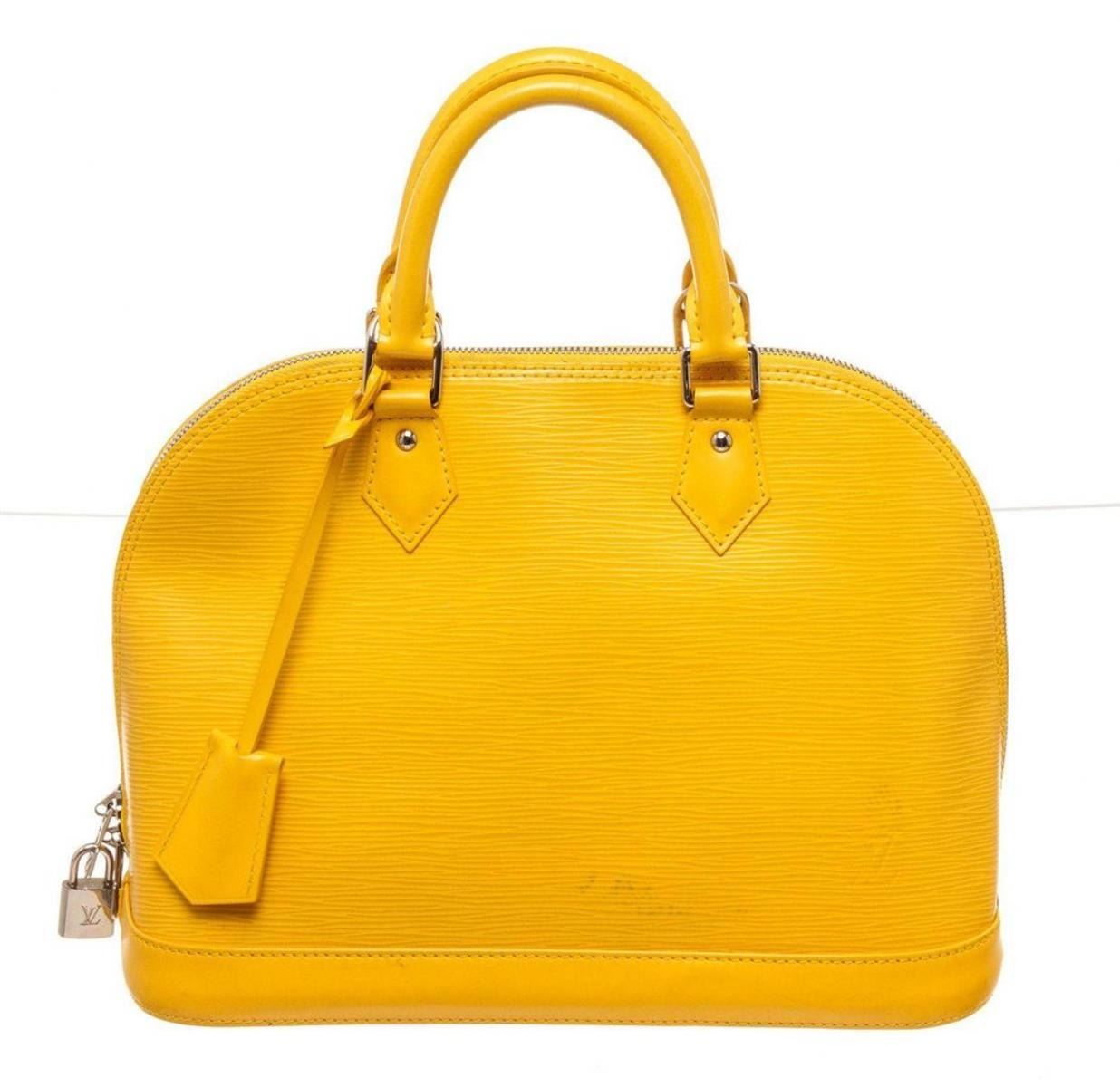 Louis Vuitton Yellow Epi Leather Alma PM Satchel. Louis Vuitton Yellow Alma PM Satchel with material epi leather, gold-tone hardware, trim tan vachetta leather, interior slip pockets, dual top handle and zipper closure.