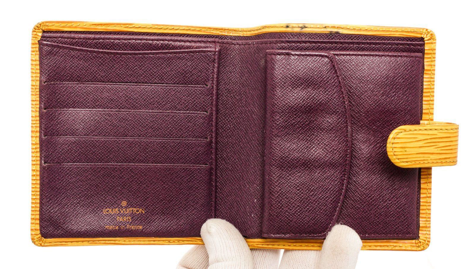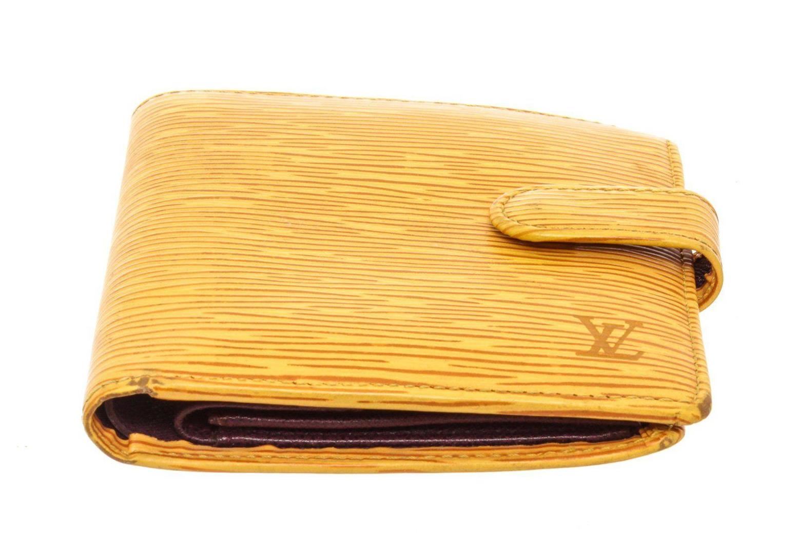 Louis Vuitton Yellow Epi Leather Bifold Wallet with gold-tone hardware, leather lining & interior flap pocket with card slots, exposed bifold & snap closures. Measurements: Length 1 in / 3 cm Width 4 in / 10 cm Height 4.25 in / 11 cm Condition: Pre-Owned Good overall, please see photographs for detail.