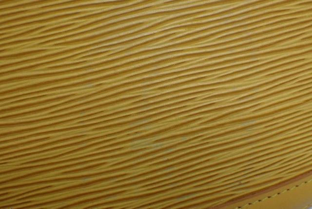Yellow Epi leather Louis Vuitton Cluny shoulder bag with gold-tone hardware, single flat shoulder strap with peg-in-hole adjustment, embossed logo at front corner, tonal Alcantara lining, single pocket at interior wall and turn-lock closure at front flap.