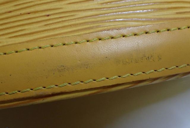 Louis Vuitton Yellow Epi Leather Cluny Shoulder Bag. Please see photos and description for all available information! Yellow Epi leather Louis Vuitton Cluny shoulder bag with gold-tone hardware, single flat shoulder strap with peg-in-hole adjustment, embo