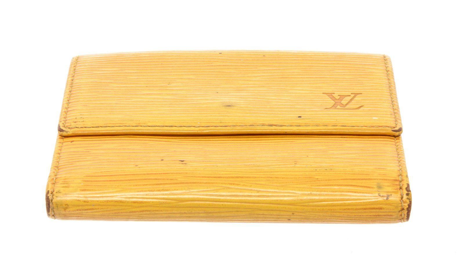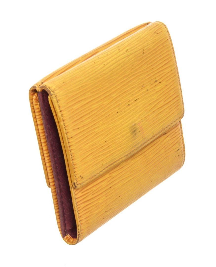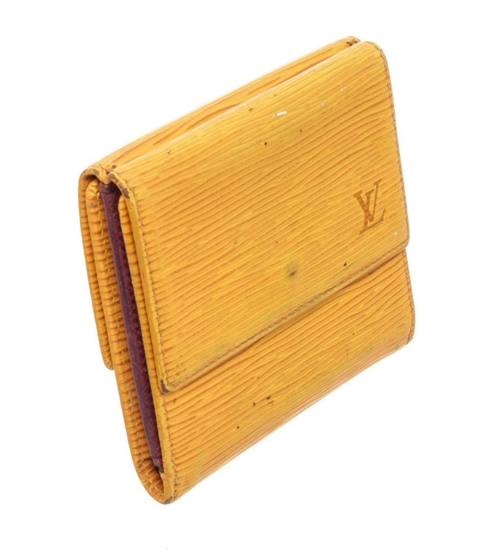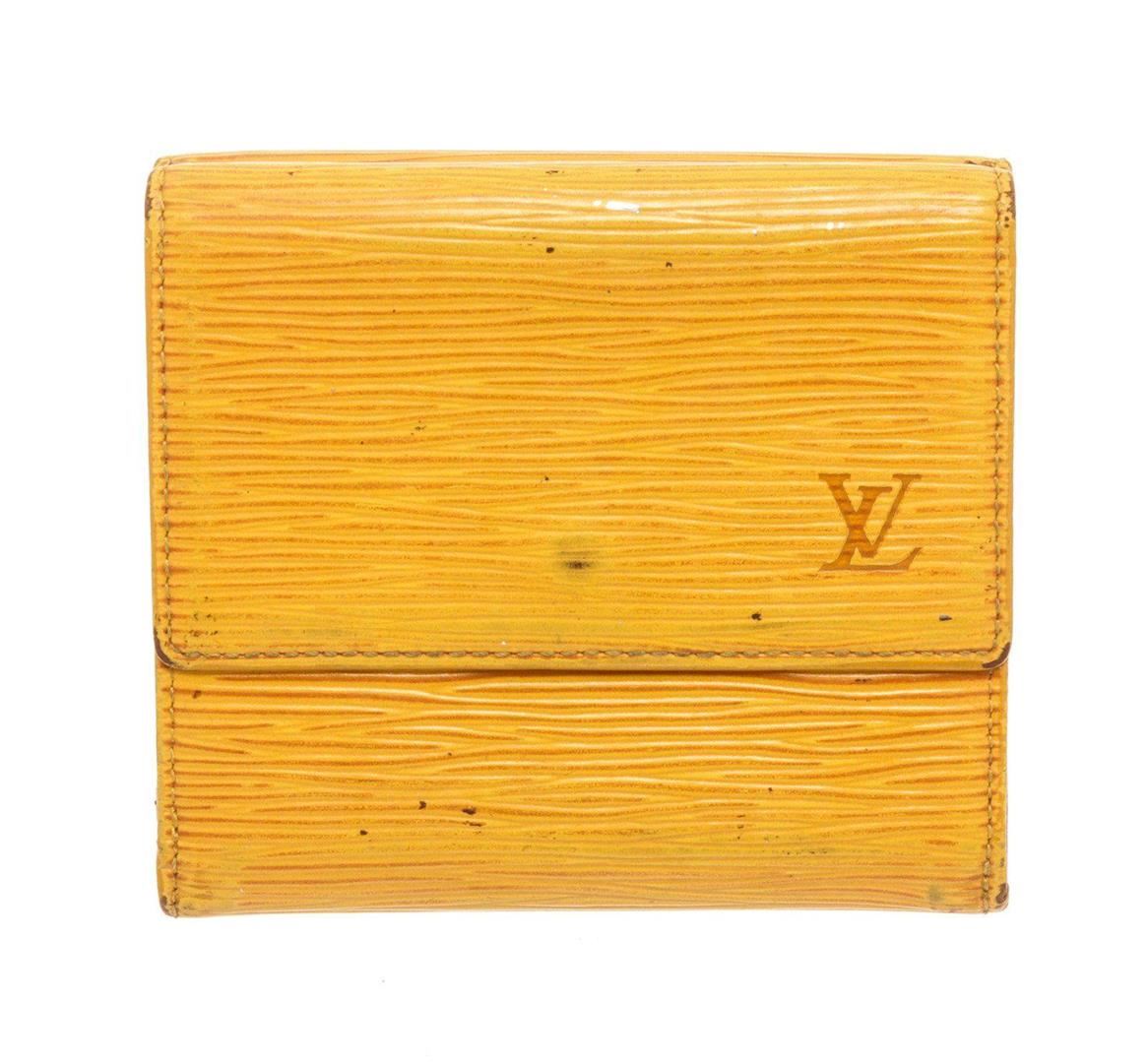 Louis Vuitton Yellow Epi Leather Elise Wallet with silver-tone hardware, dual exterior pockets, Debossed logo, leather lining & dual interior pockets, snap closure. Measurements: Length 0.5 in / 1 cm Width 4.25 in / 11 cm Height 4.25 in / 11 cm Condition: Pre-Owned Good overall, please see photographs for detail.