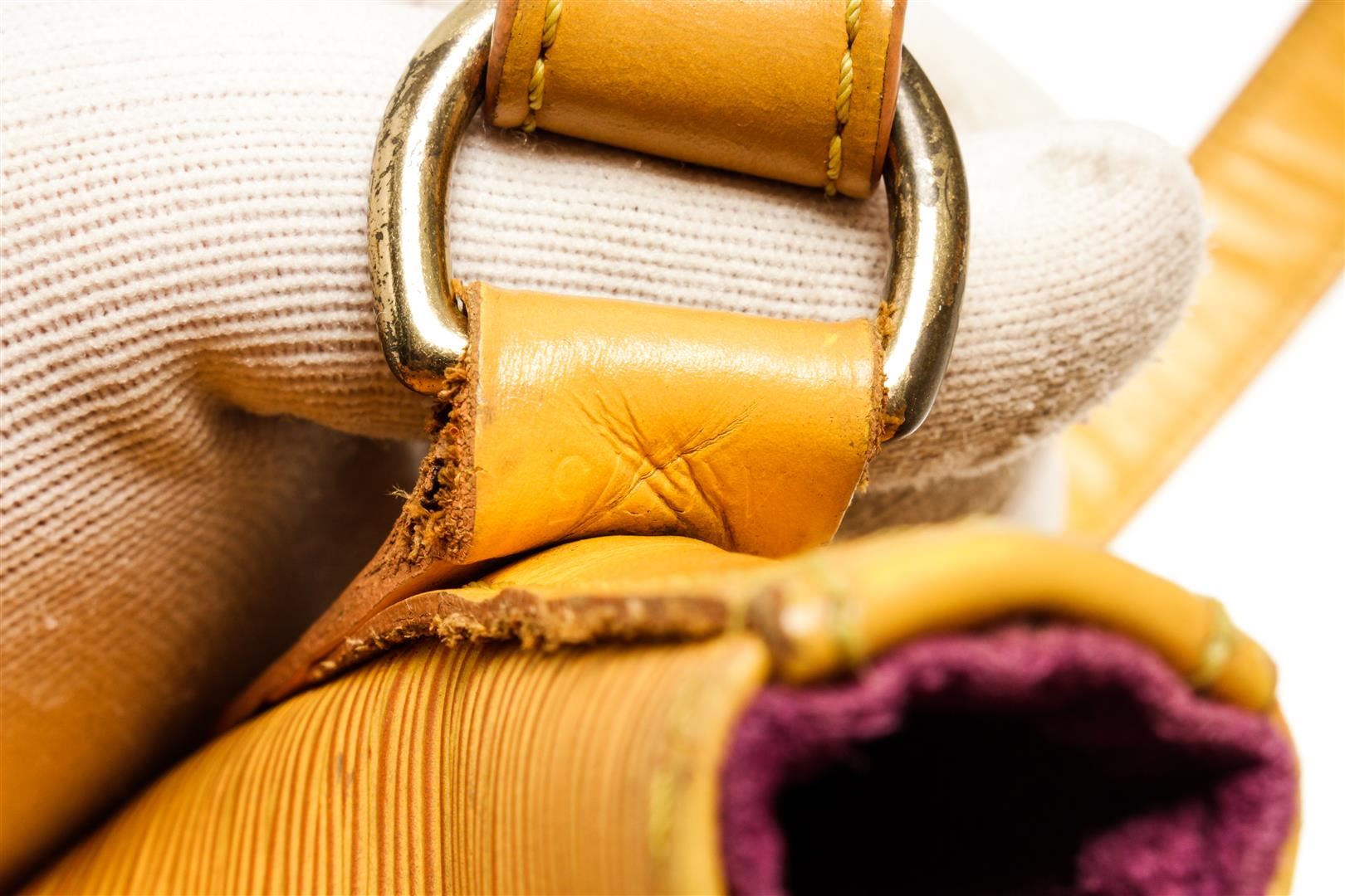 One Louis Vuitton Yellow Epi Leather Noe Bucket Bag. Item is sold AS-IS. All available information is listed in the description and shown in the photo. Louis Vuitton Yellow Epi Leather Noe Bag with gold-tone hardware, yellow leather trim, purple suede lining, single adjustable leather shoulder strap, and drawstring closure. .