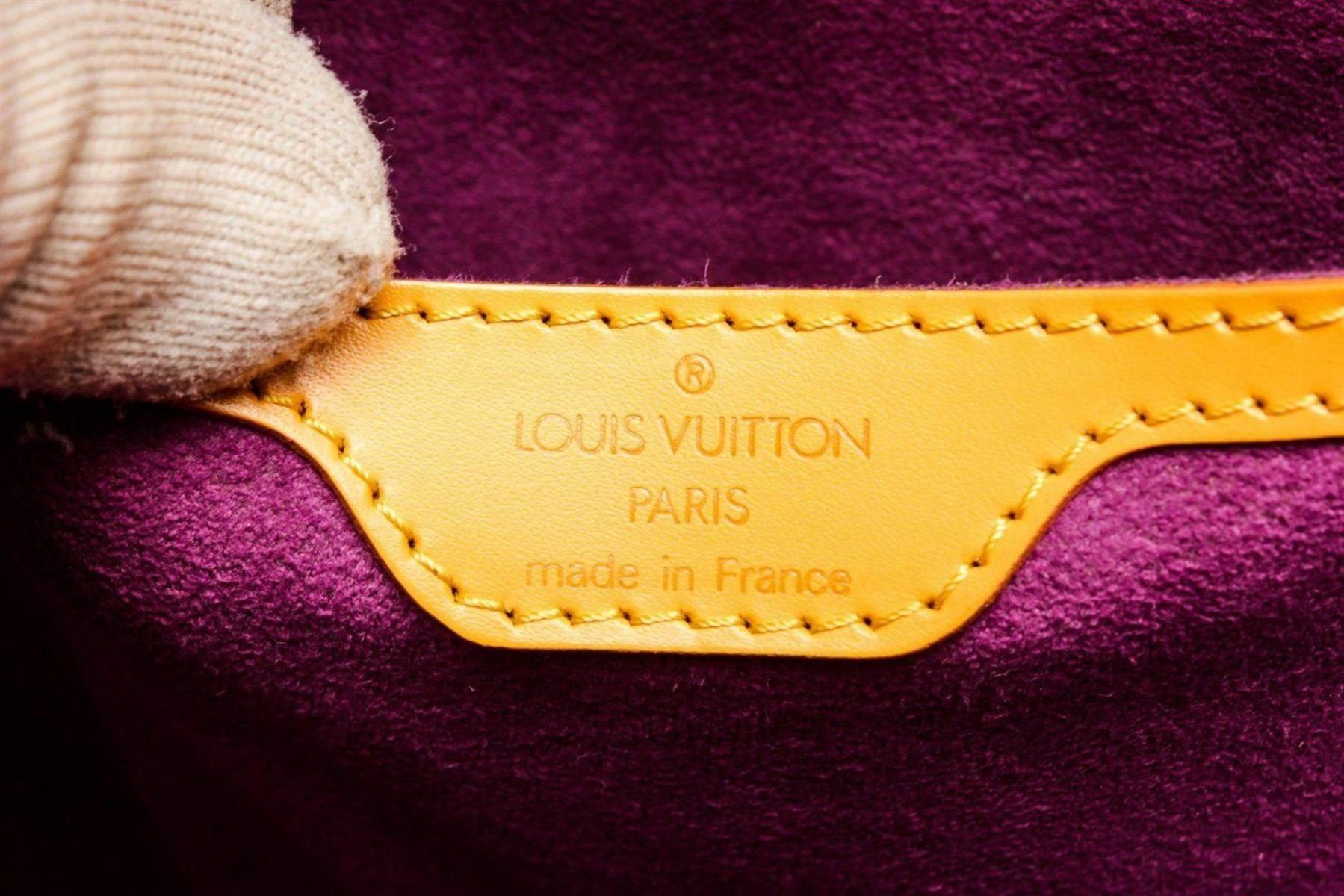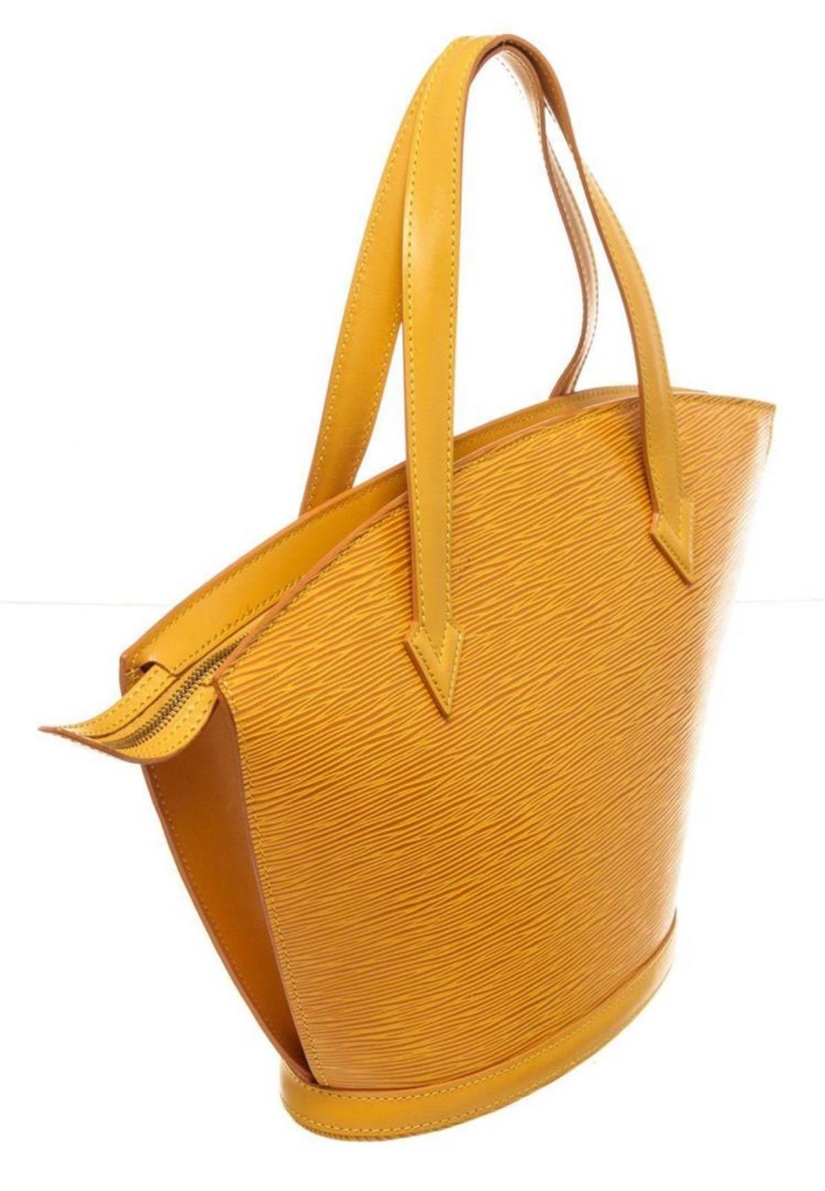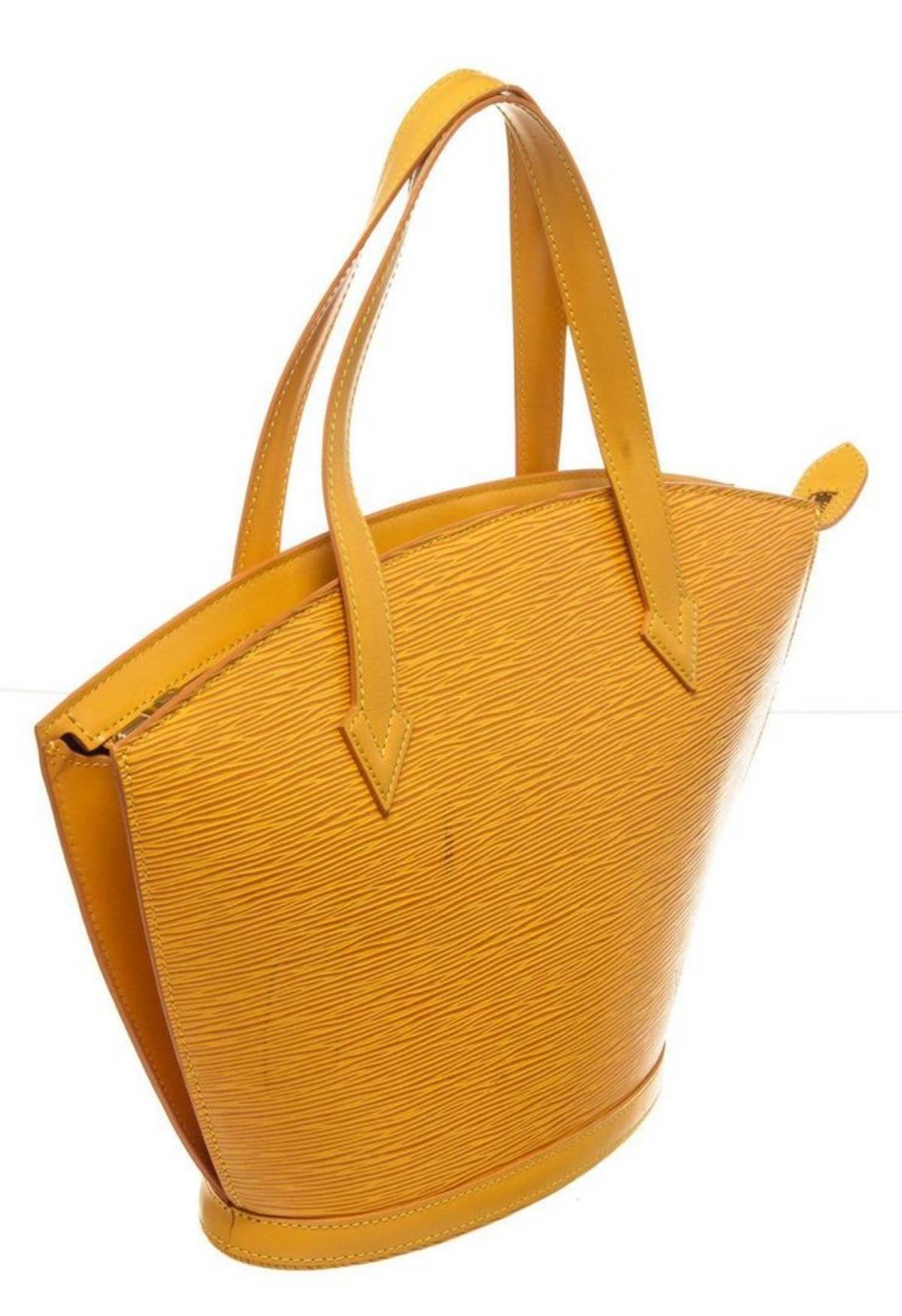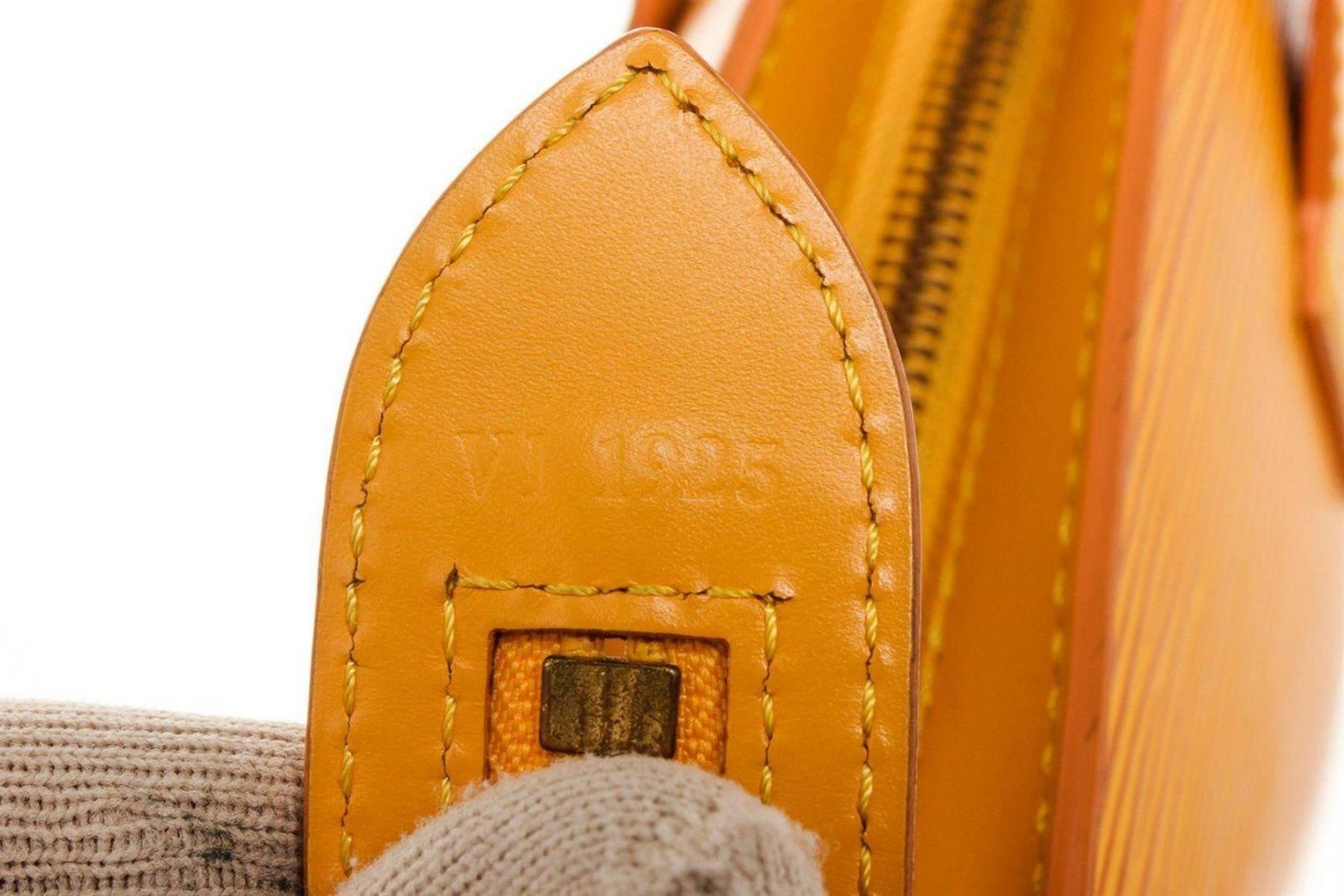 Louis Vuitton Yellow Epi Leather St. Jacques PM Shoulder Bag with gold-tone hardware, canvas lining, leather shoulder strap, and zip closure.